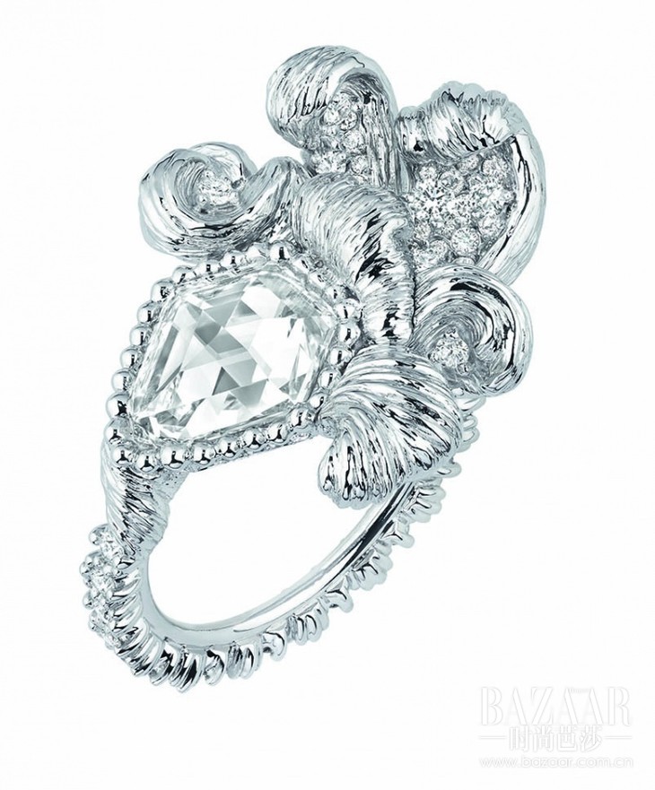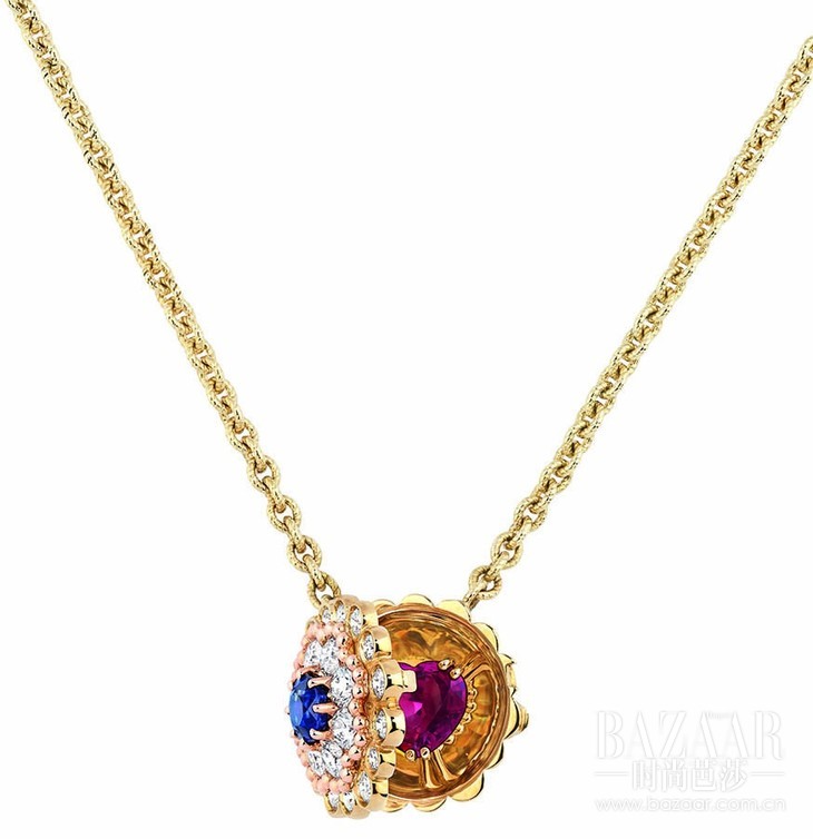 如同是一场时空的漫游,开启戒指一侧的环扣,仿佛打开一只精雕细刻的精美梳妆盒,犹如一道神秘魅影,穿梭于烛火掩映下连接国王寝宫与其情人卧房之间的幽暗长廊;或将钻石沿轴线转动,领略错落镶嵌的宝石所勾勒出的渐次变幻之美,犹如开启幽秘门廊,通往一个个新奇世界;抑或仿佛打开隐秘抽屉,一只小巧珠宝盒映入眼帘,爱侣们将往来书信小心翼翼地珍藏其中……新系列以古董珠宝喜用的趣味装置为基调,并赋予它们神秘的故事内涵。