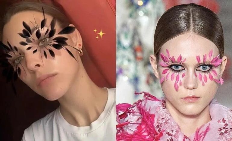 这是Valentino和Karol Sudolski共同推出的妆容模拟滤镜,模拟了Valentino 2019 春夏秀场的羽毛眼妆,可望不可及的高定妆容一秒就能get,时髦精们早就玩疯了。