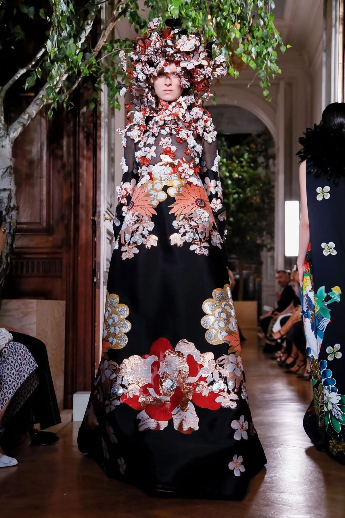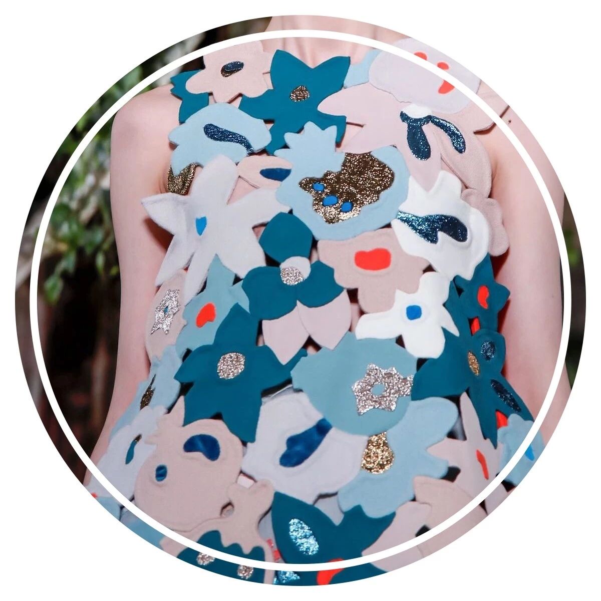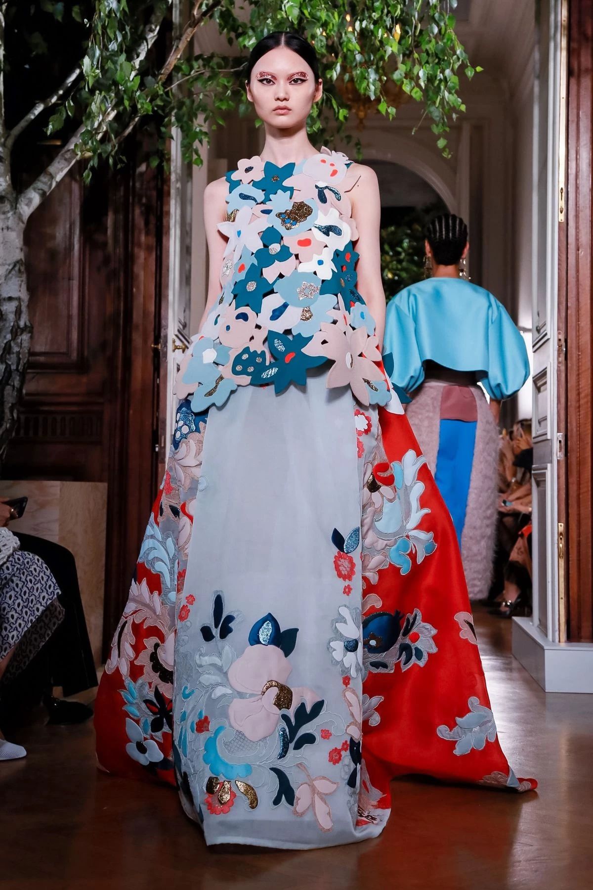 不同以往,Valentino的浪漫后花园开满了来自世界各地的花语,烂漫的大片数码印花,摇曳的3D立体雕花还有来自东方的剪纸花,不同背景的花朵却拥有着同样的语言。