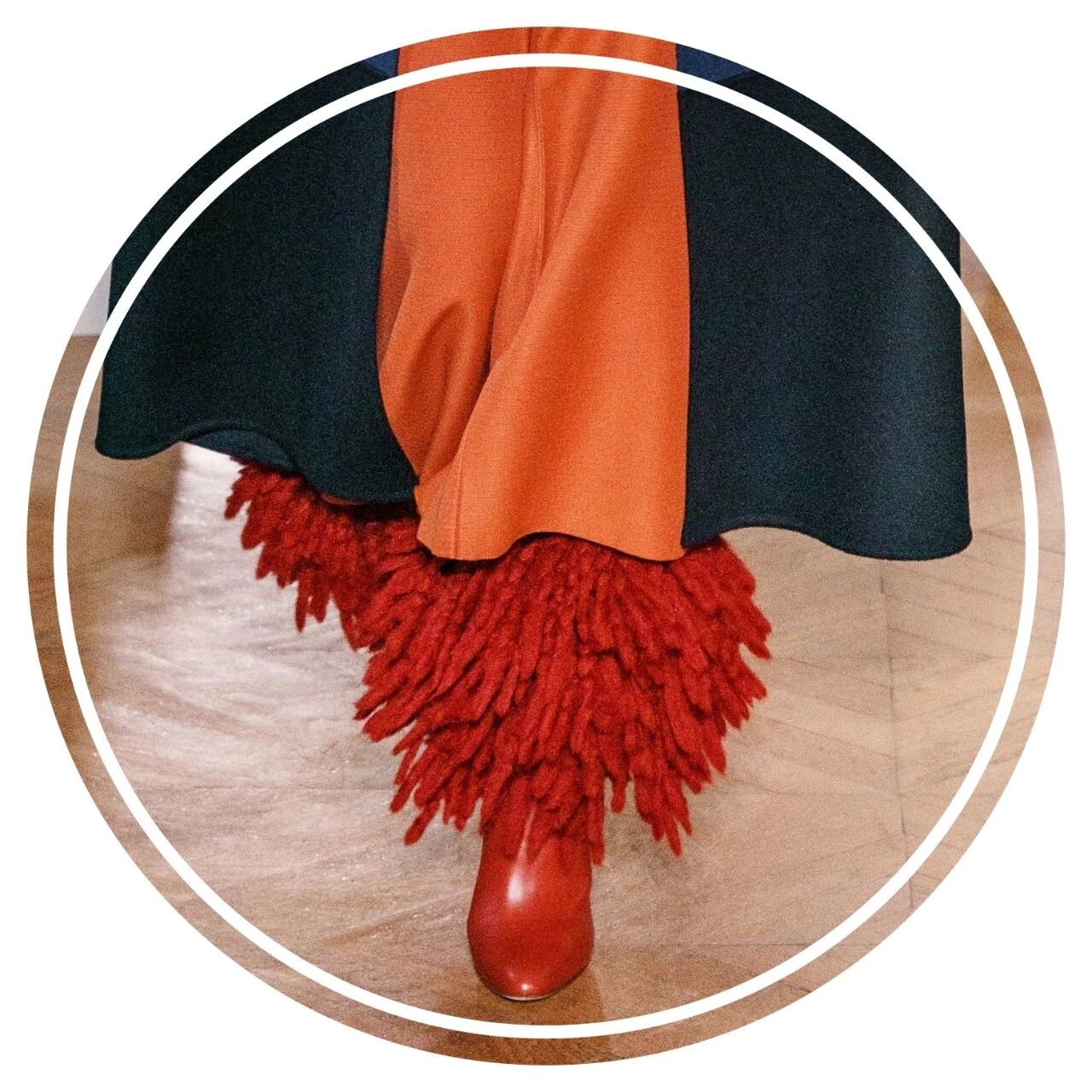 毛线流苏也成为根植于这场秀的核心元素,无论是层叠的堆积还是边缘的缝嵌,渐变色的过渡还是不同颜色的碰撞混搭,都极具质感又热烈华丽。