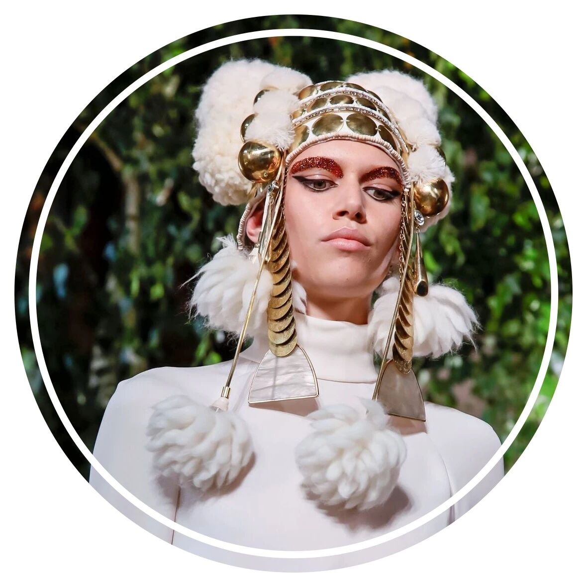 颜色各异的头饰,东西方风情的融合渗透于每一处细节,风华绝代的发髻配上和风金属镶边板,多元文化在此刻汇集为风格鲜明的独立群像。