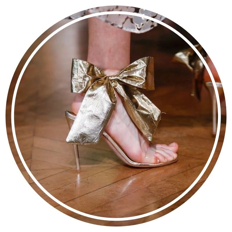 这一次Pierpaolo Piccioli把它转移到了凉鞋上,金属亮色让昔日里的甜美温柔多了份不顺从的桀骜。而盛开在脚踝的毛线流苏,就像烟花在夜空绽放。