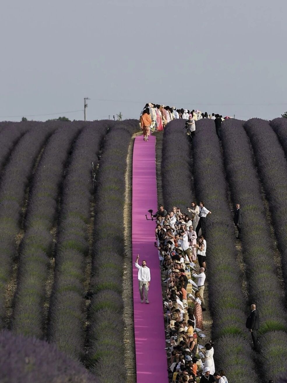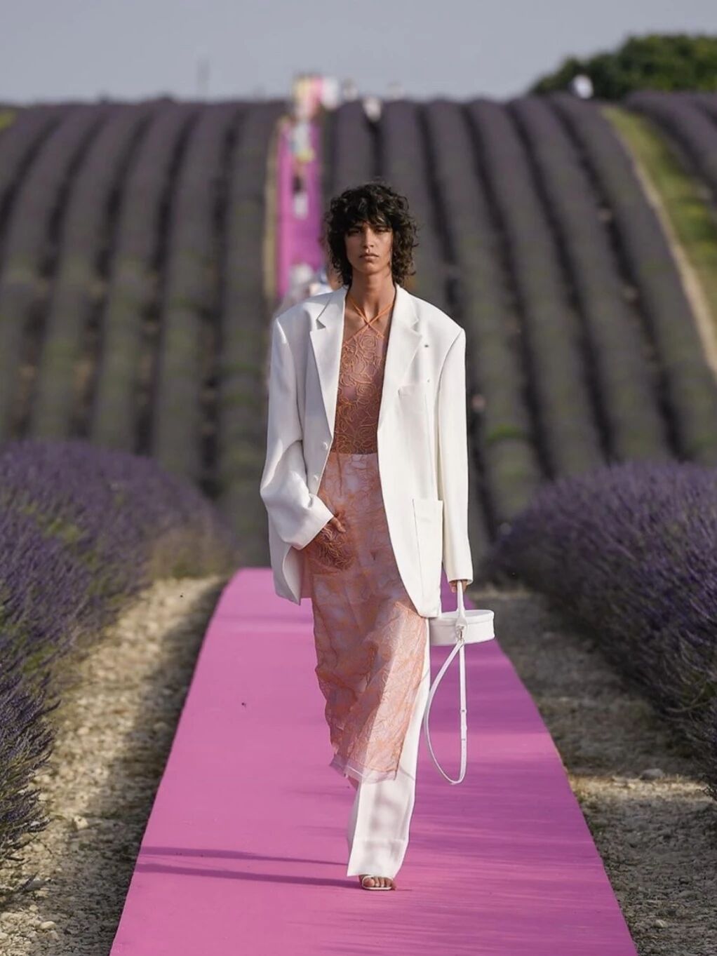 前段时间Jacquemus十周年大秀于普罗旺斯瓦伦索勒的一片薰衣草田盛大举行, 大秀以“Le Coup De Soleil" (意为'阳光照射的一瞬')为主题, 展现了慵懒闲适的南法风情以及设计师Simon Porte骨子里的浪漫自由与诗情画意。