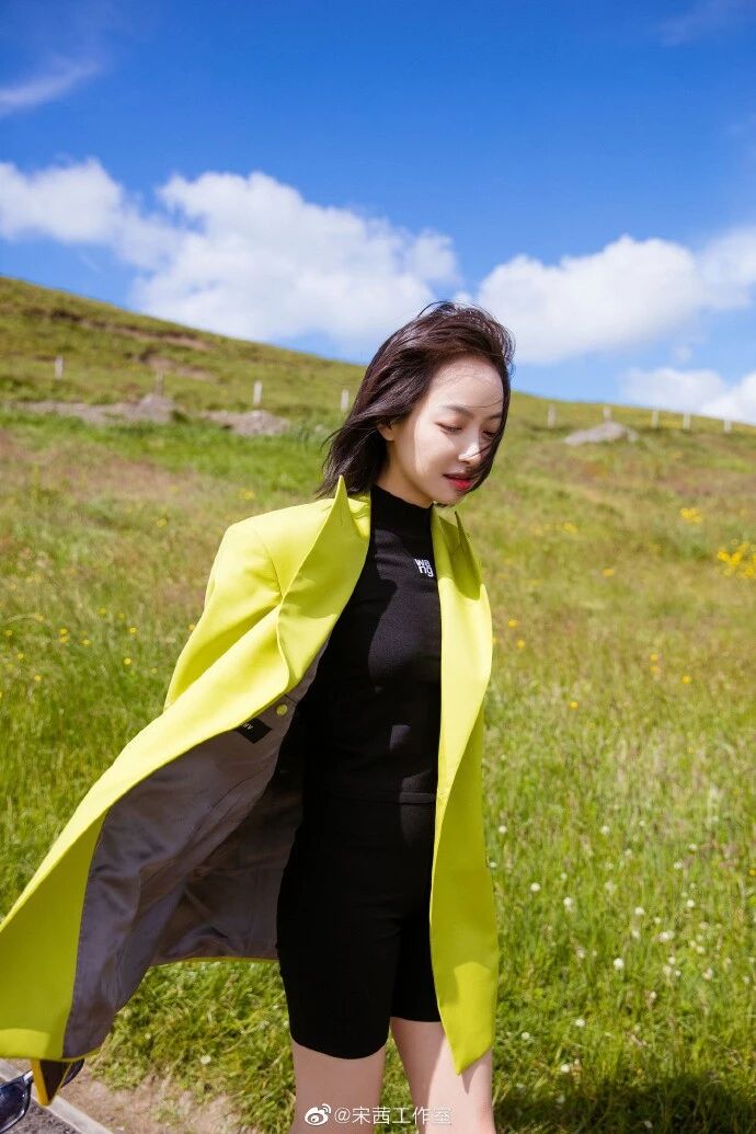 但是,最适合大美茜可能是男装啊~ 穿着今年最流行的自行车裤,搭配亮黄色Oversize西装,看起来真是A爆了!