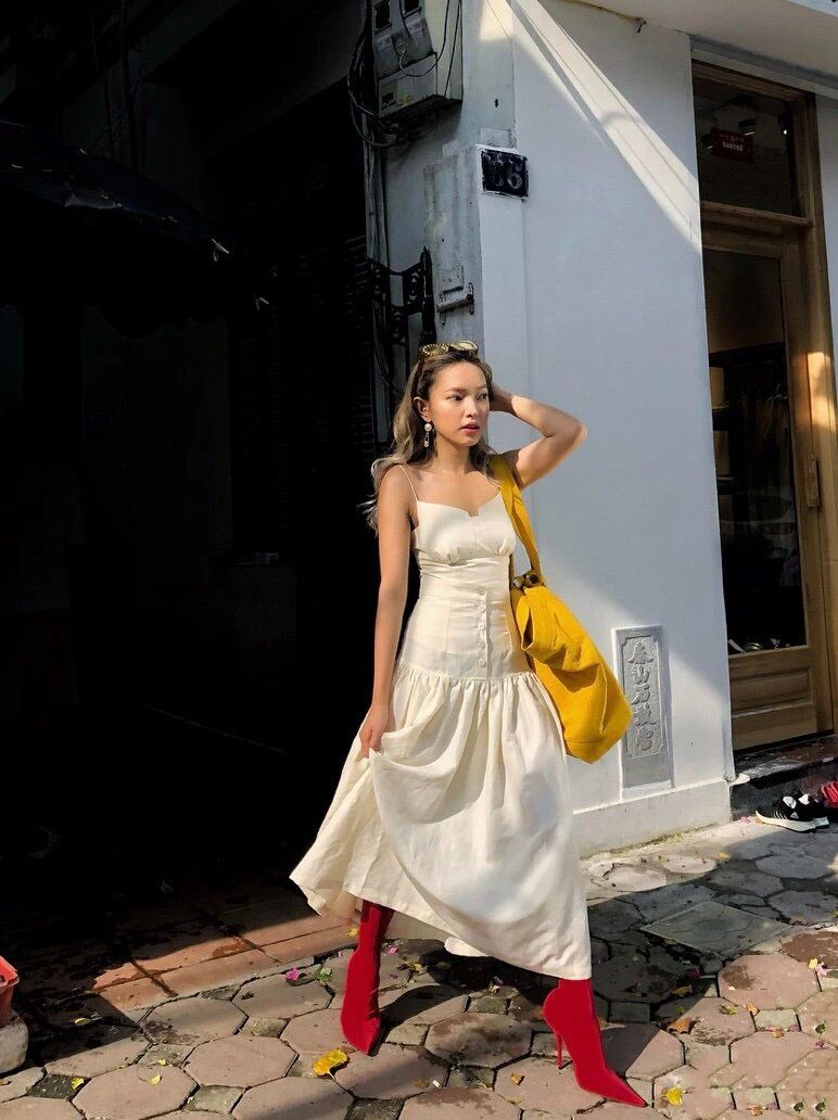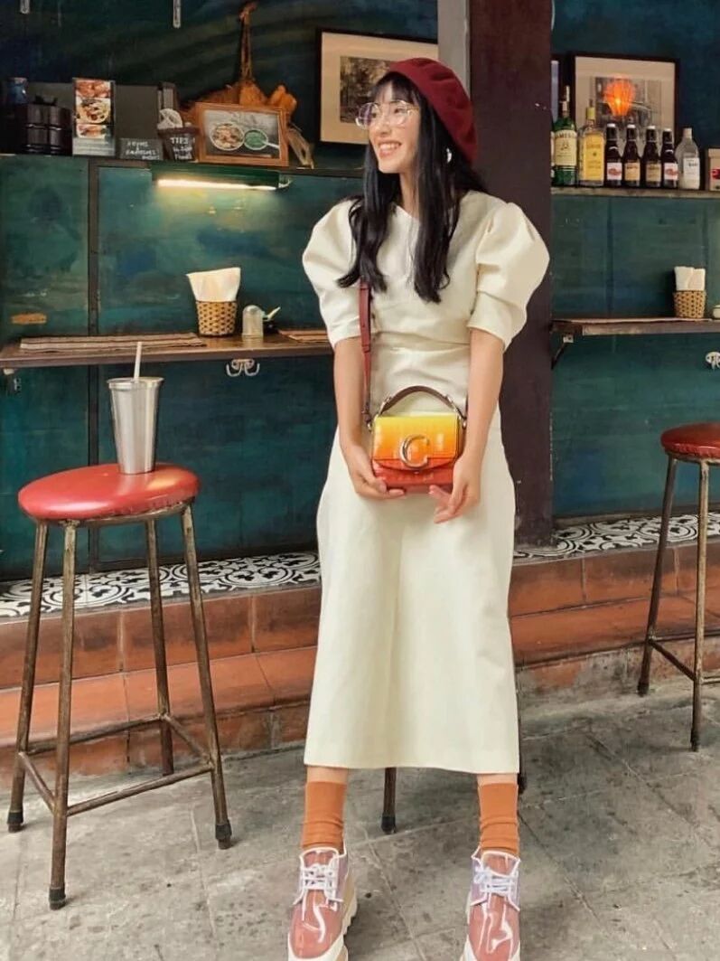 细心的小伙伴一定有留意到,Chau Bui的这双松糕鞋出镜率非常高!百搭的白色鞋面,而撞色的鞋底却十分个性。这么显腿长,一定要多pick它。