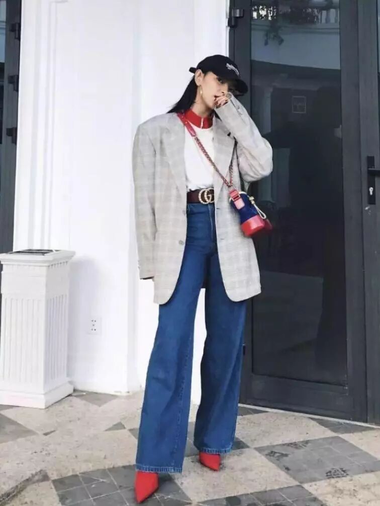 酷酷的运动休闲风,是让增高鞋搭得好看的秘诀。除了松糕鞋,红极一时的老爹鞋怎么少得了,搭配宽松的运动裤,不仅掩盖了腿型的缺陷,还很显高。