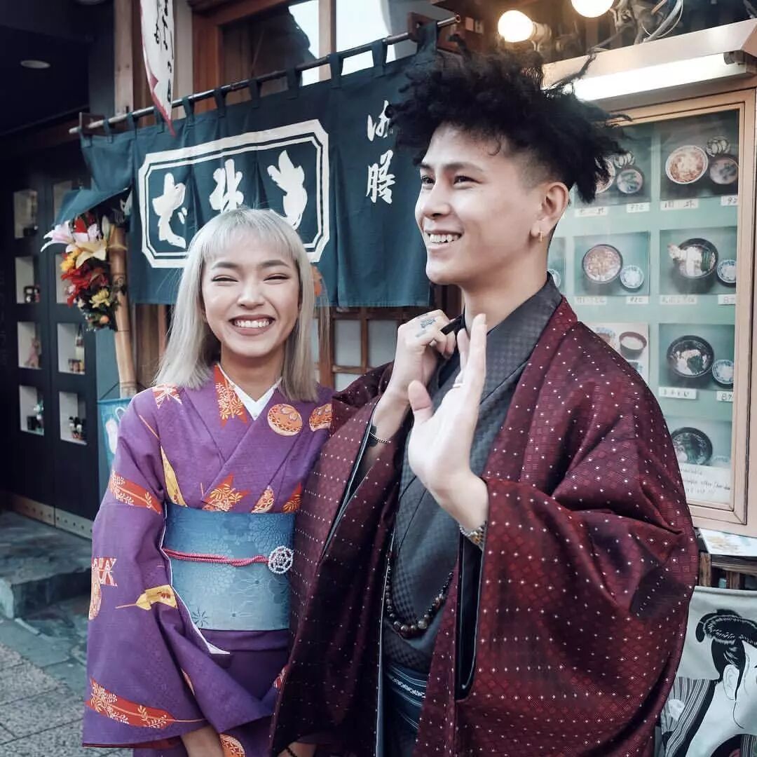 穿上Kimono后,又马上变身日系可爱萝莉,时髦又小鸟依人。
