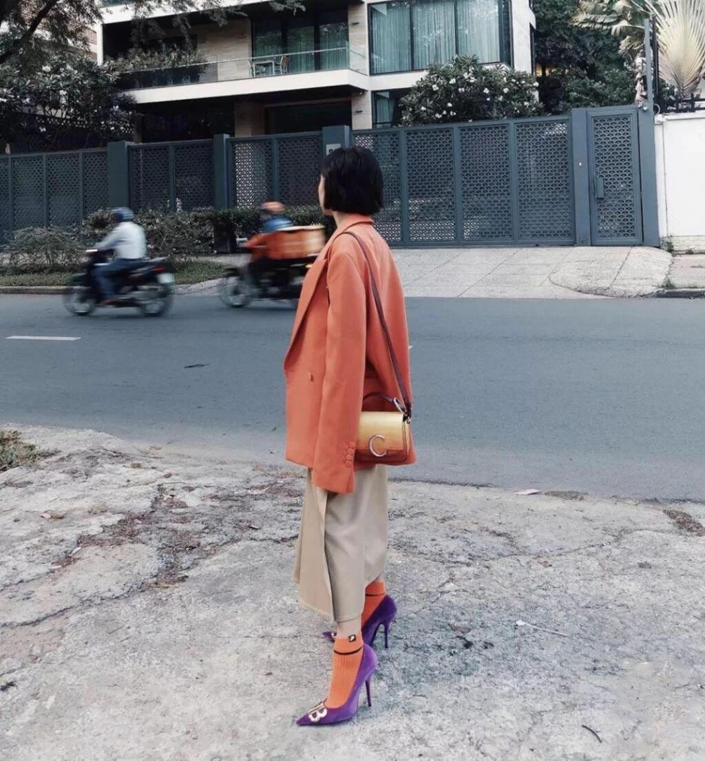 这位97年生的女孩名叫Chau Bui,她的长相很有辨识度,鲜明强烈的穿衣风格,使她迅速蹿红,一跃成为越南最具影响力的时尚博主之一。