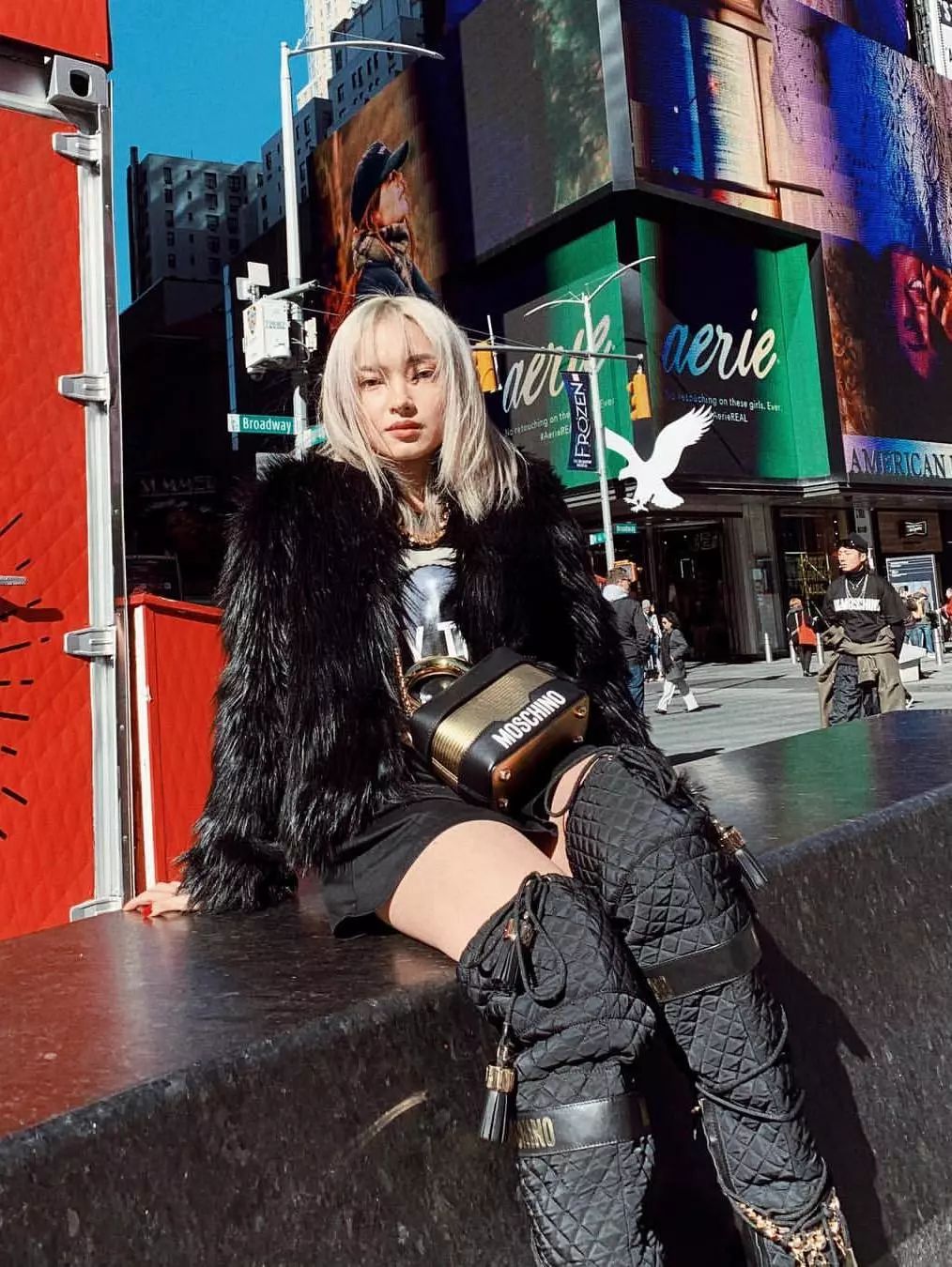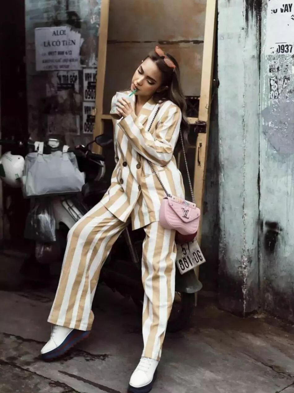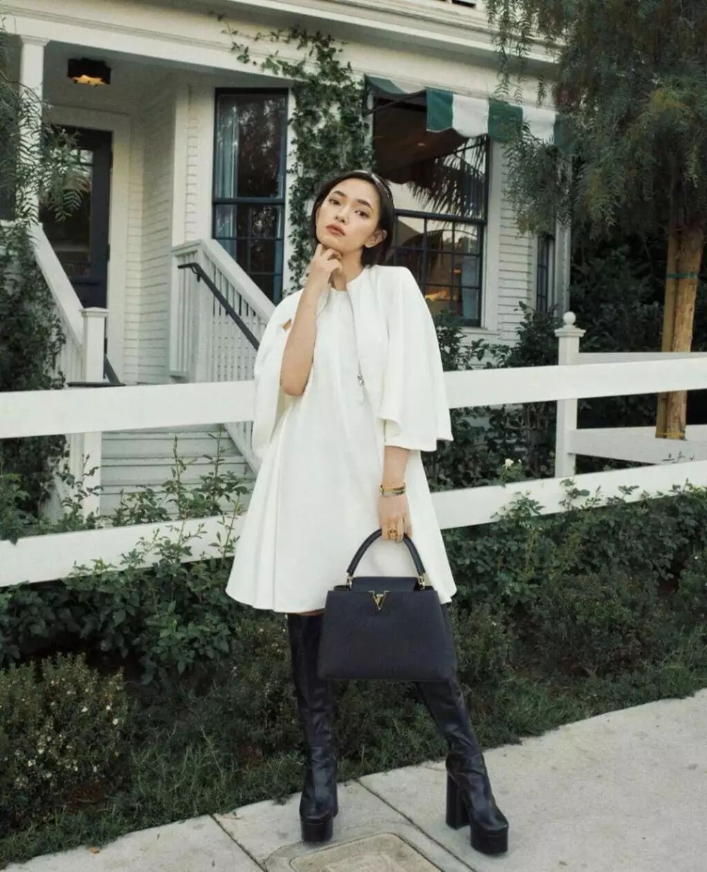 除了超棒的衣品,让Chau Bui看起来和175cm的超模看起来无差,心机的拍照pose也让我们看到了她满屏的大长腿。