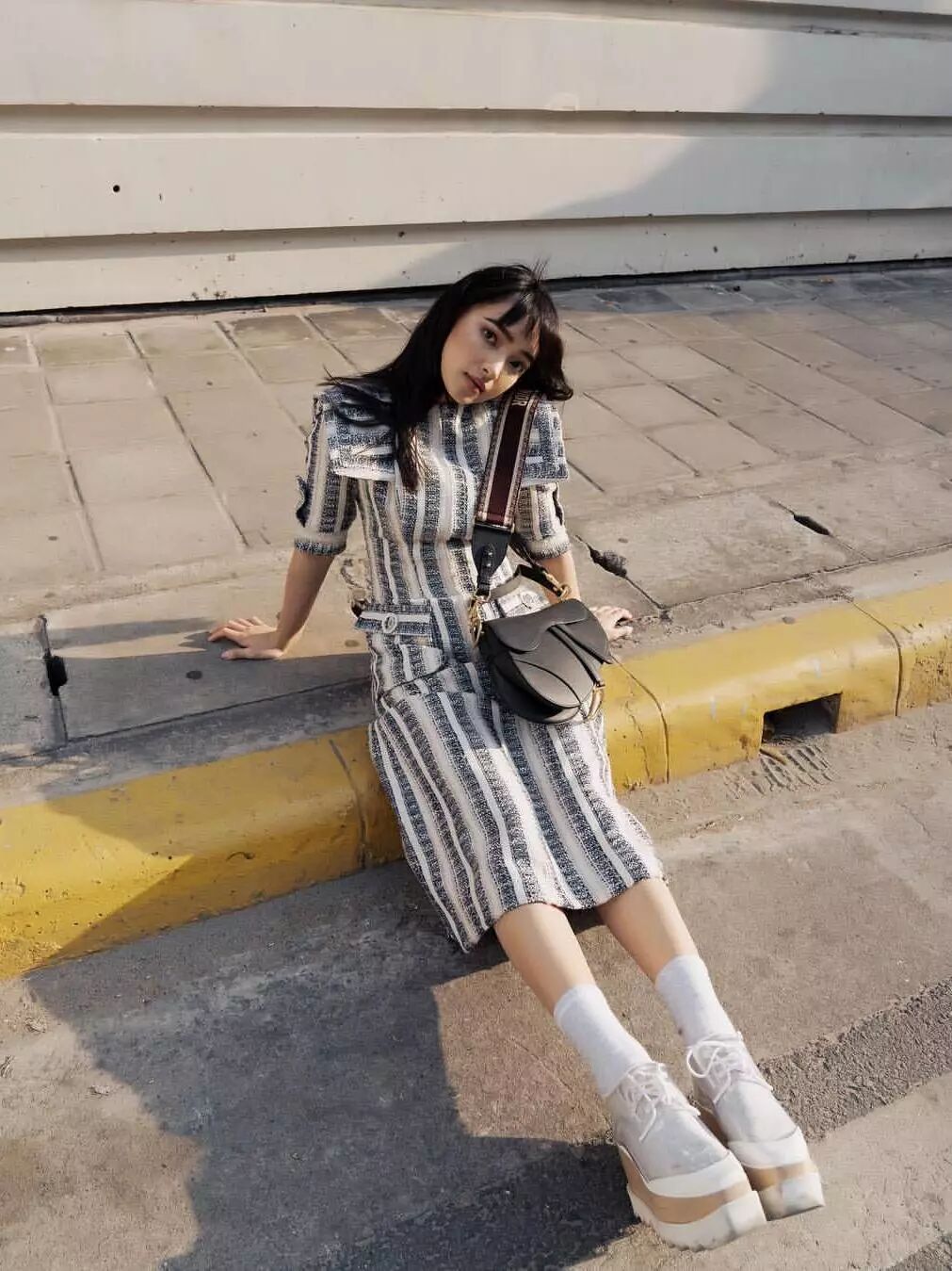穿梭在东京街头时,又换上足足的大姐范。冷艳的表情,这还是刚刚那个微笑甜美的女孩吗?