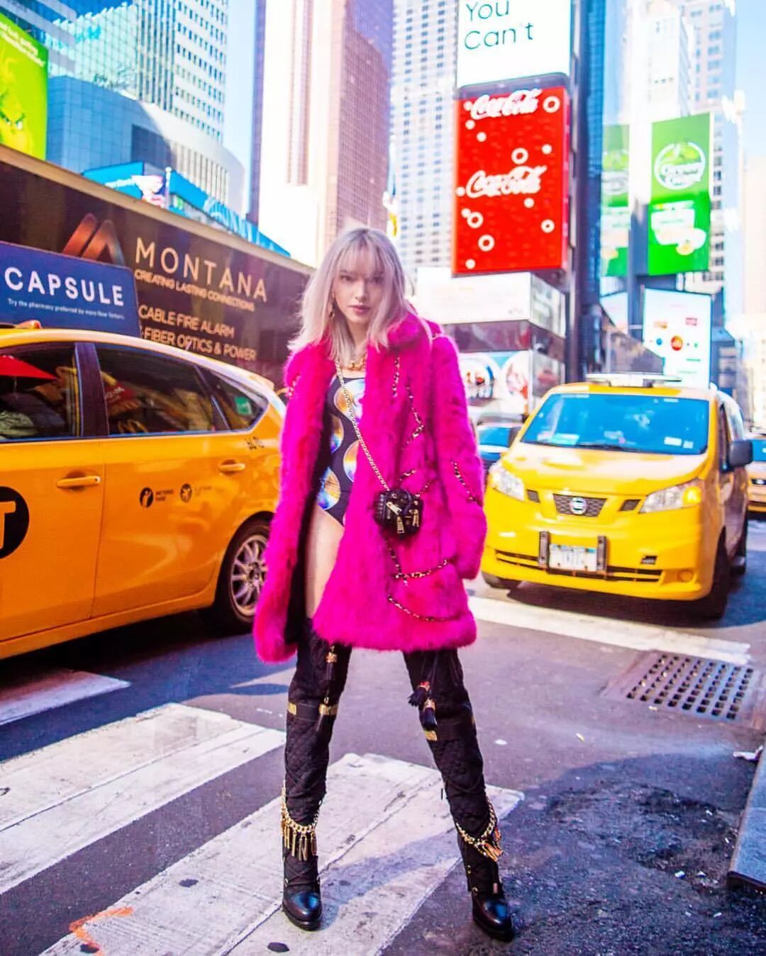 就算和霉霉撞类似款,这种一般人难以驾驭的芭比粉,她也丝毫不输气场,还将皮草演绎出和霉霉完全不一样的少女感。