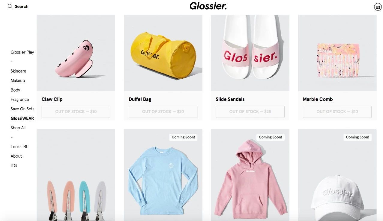 一向走少女简约风的Glossier,这次跨界一口气推出数件休闲单品,除了粉红色卫衣,还有各种潮流配饰:拖鞋,梳子、发夹,运动袋等。随便一个都能攻陷你的少女心。