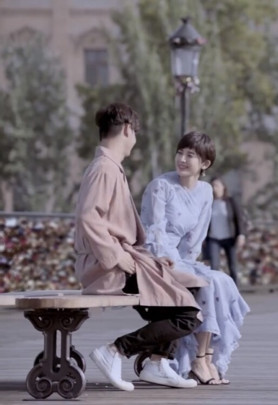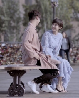 而回忆年少时和男友相处的画面,她则是一身印花的透明薄纱长裙的造型。少年时一副岁月静好的模样让人慕了。
