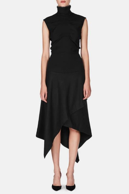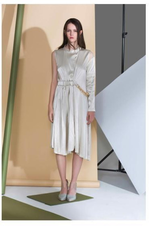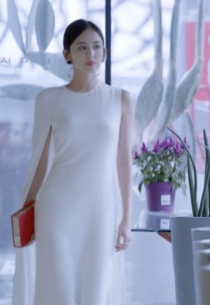 为了搞定失约的合作对象,沈忆恩用一条不对称的纯白披风长裙做战袍,独特的肩部设计武装出强大的气场,轻轻松松拿下一局。