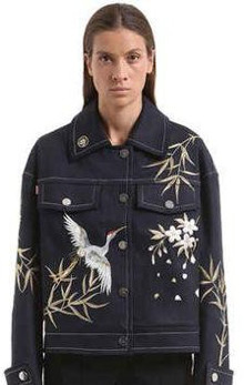 就拿刚出场的那身牛仔套装来说,Angel Chen的仙鹤和竹叶刺绣牛仔外套搭配CELINE纯白方头靴,干练而不失个性。一出场就将这部都市时尚剧的基调定了下来。