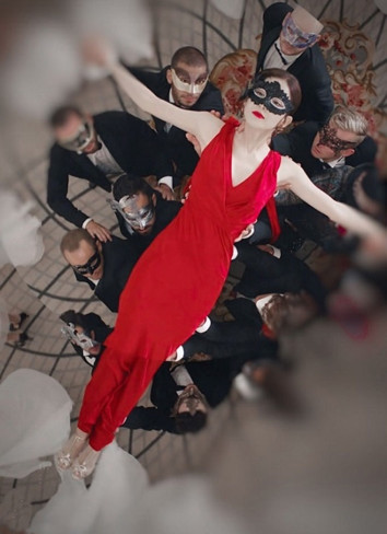 而到了蒙面舞会上,沈忆恩干脆来了条高定款的红色绸缎长裙,深V和大露背的设计又是一场致命的诱惑。