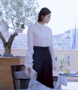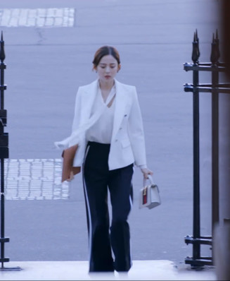 相比于其他职场女性干练而严肃的基本款衬衫,沈忆恩往往穿着更有细节设计、造型更具夸张的衬衫,把一个对穿衣很有品味的设计师人物形象表现得和谐又到位。