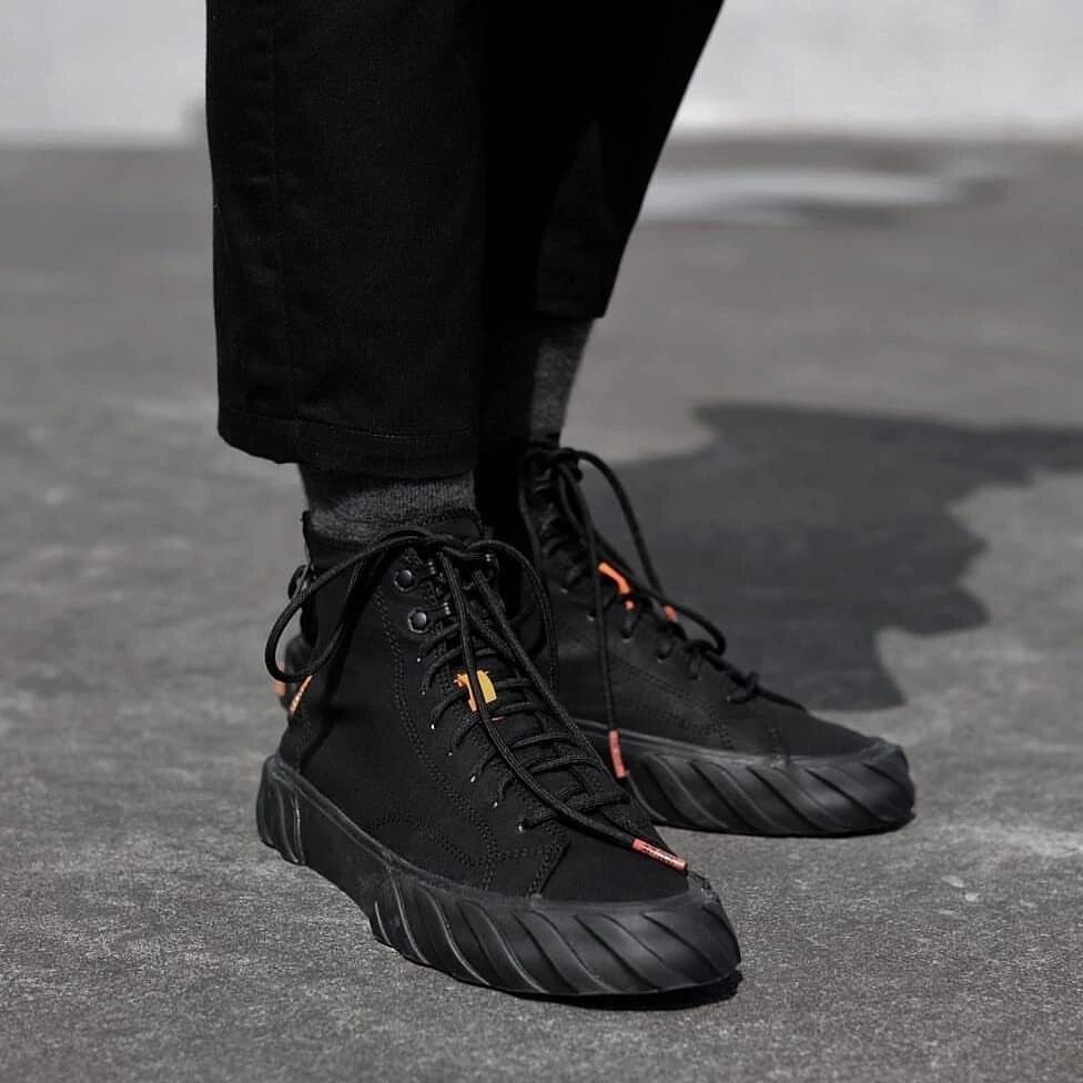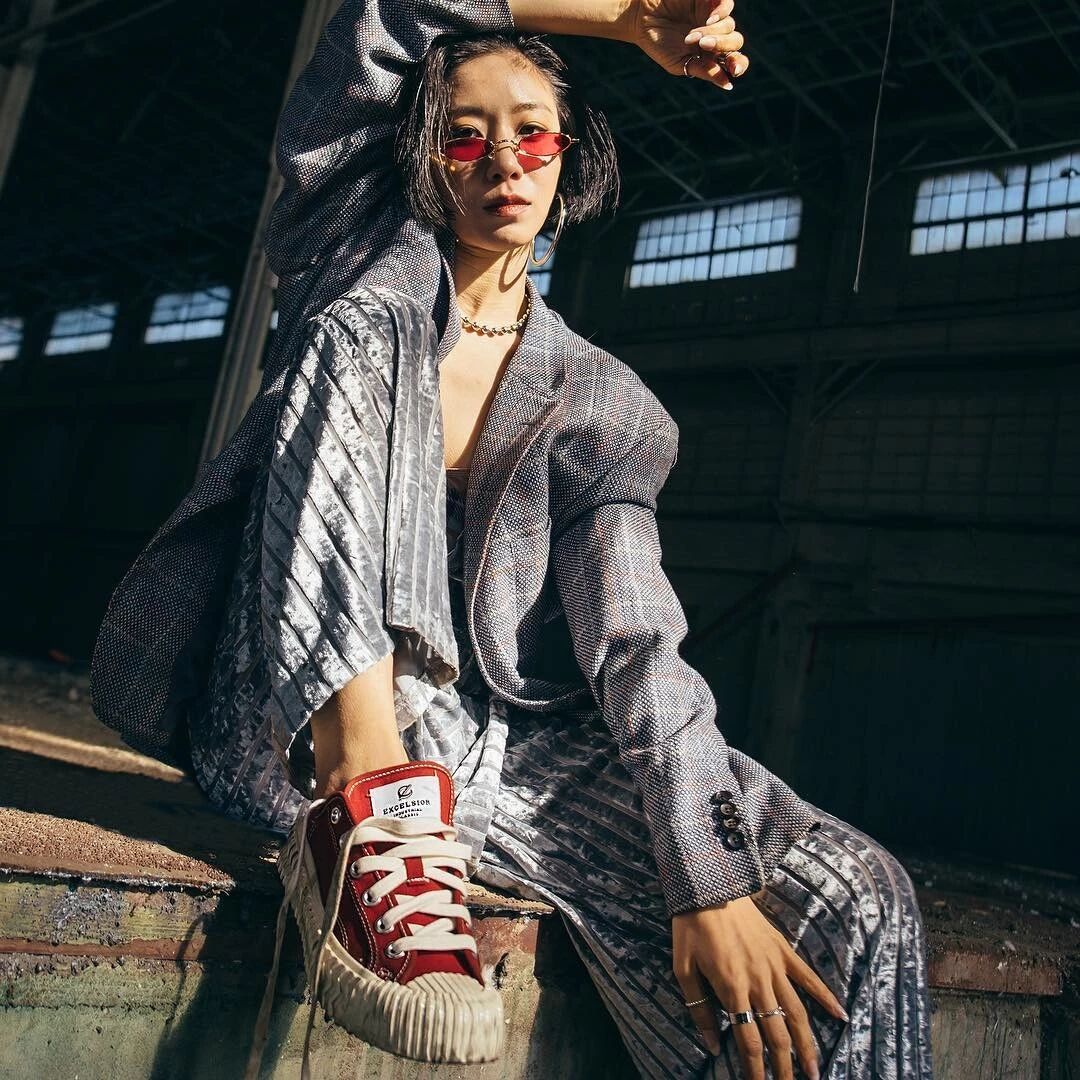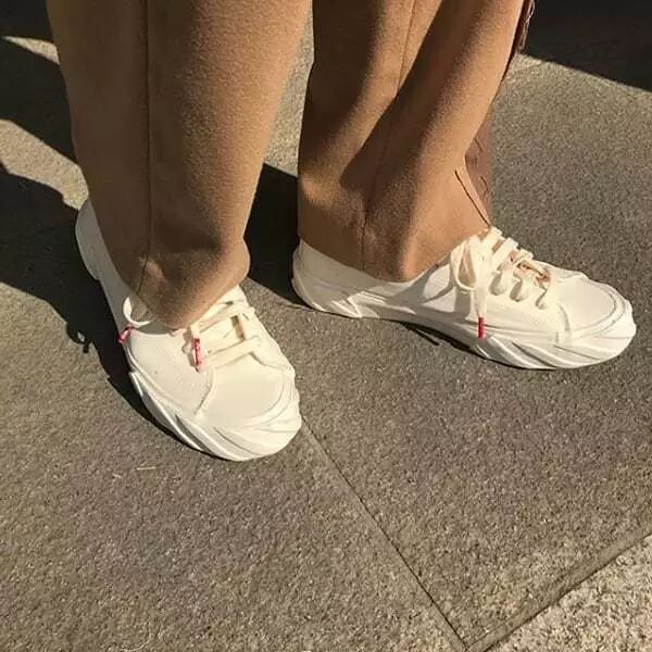 品牌主打风格也在中性工业风的基础上加入了复古的设计,鞋底也比一般的帆布鞋更厚,增高显瘦超级贴心。