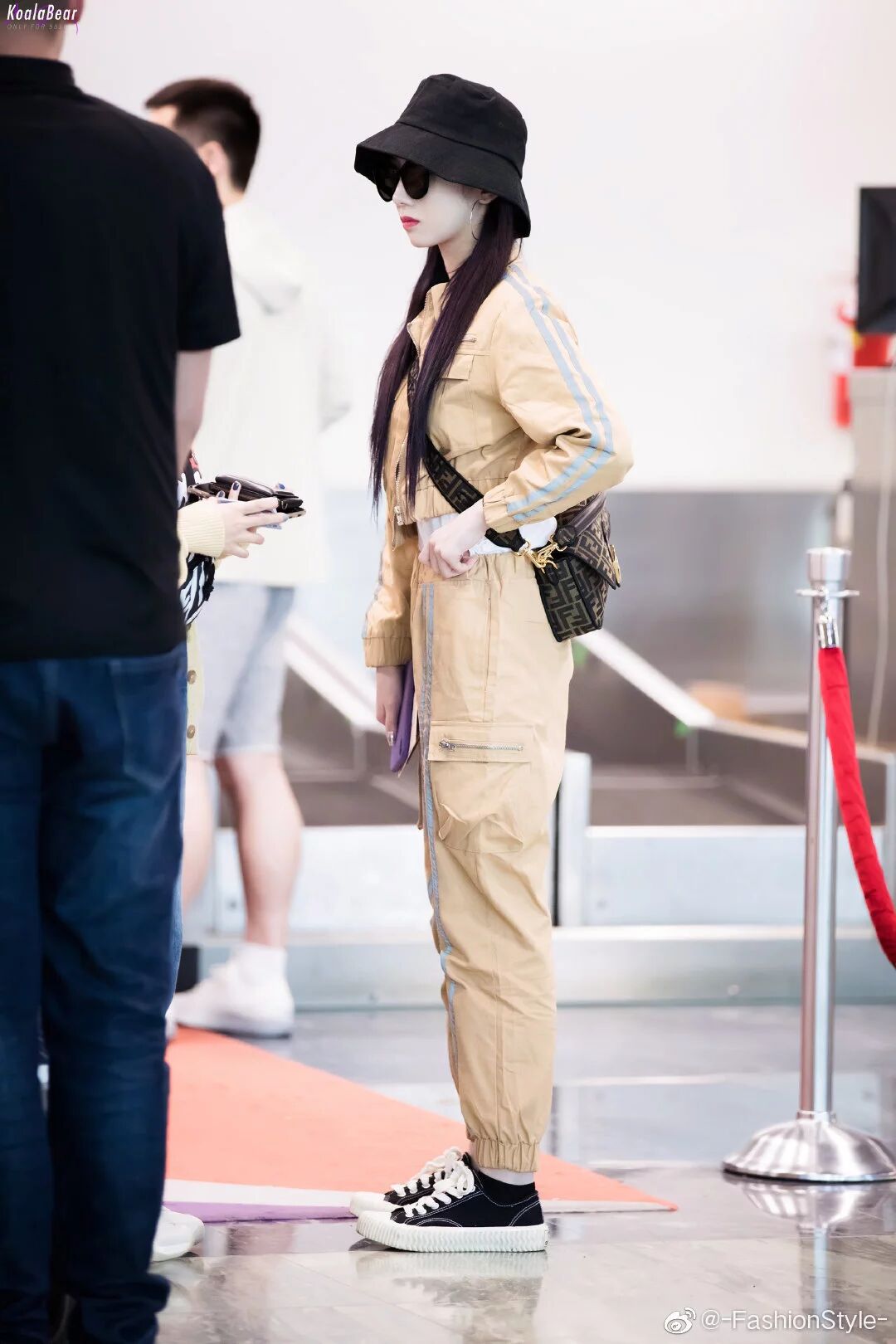 一身卡其色工装套装,走起飒爽工装风格,又奶又酷,脚下穿的就是一双黑色款的Excelsior饼干鞋。