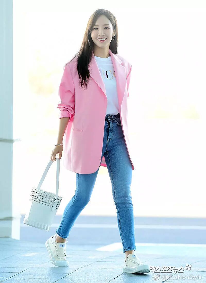 难怪韩国idol们对它爱到不行,金秘书朴敏英就用白色饼干鞋搭配粉色西装外套,减龄的同时又格外清新。