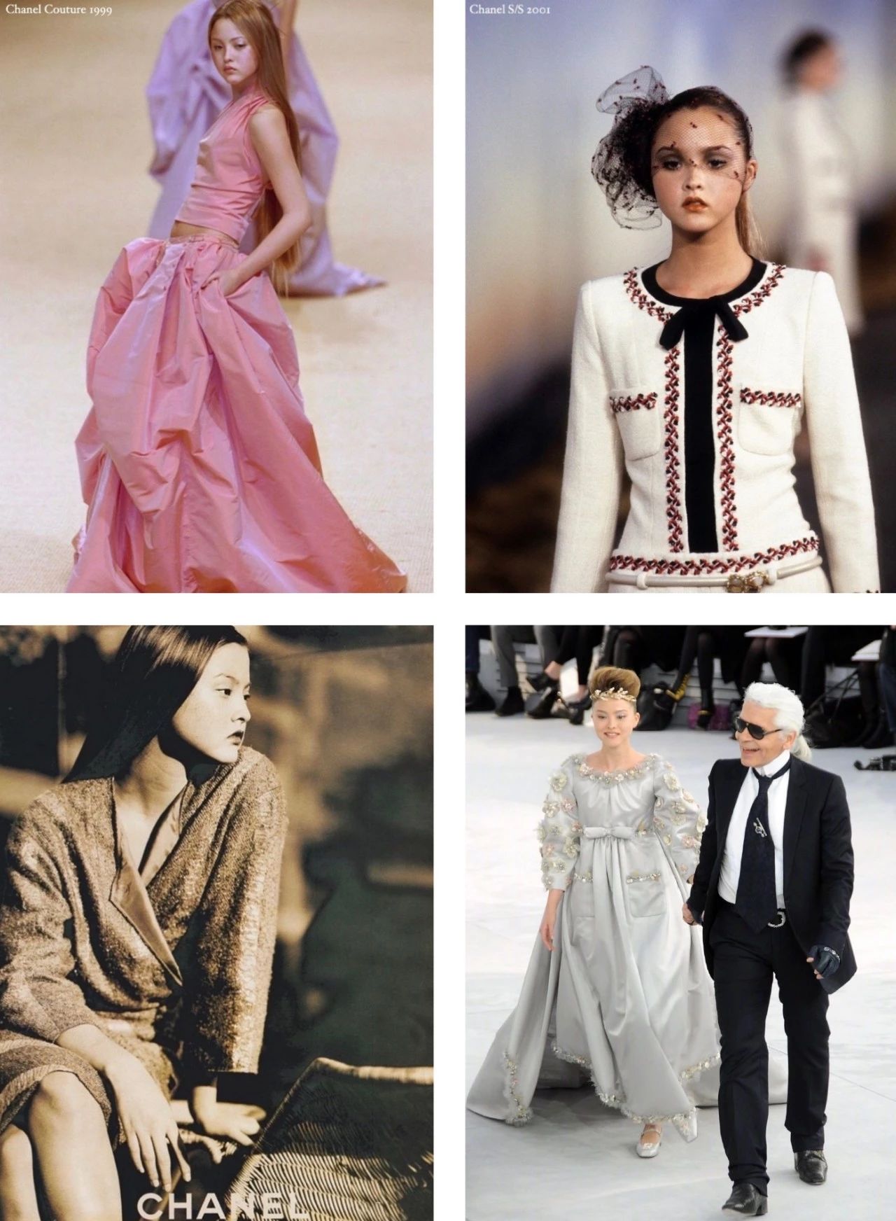 也许正是这种富于艺术性的缺陷美感让她成为了老佛爷Karl Lagerfeld的灵感缪斯, 不仅曾担任CHANEL大秀最重要的闭场模特, 还成功拿下CHANEL S/S 1999的Ad Campaign, 成为首位拍摄CHANEL广告的亚裔面孔。