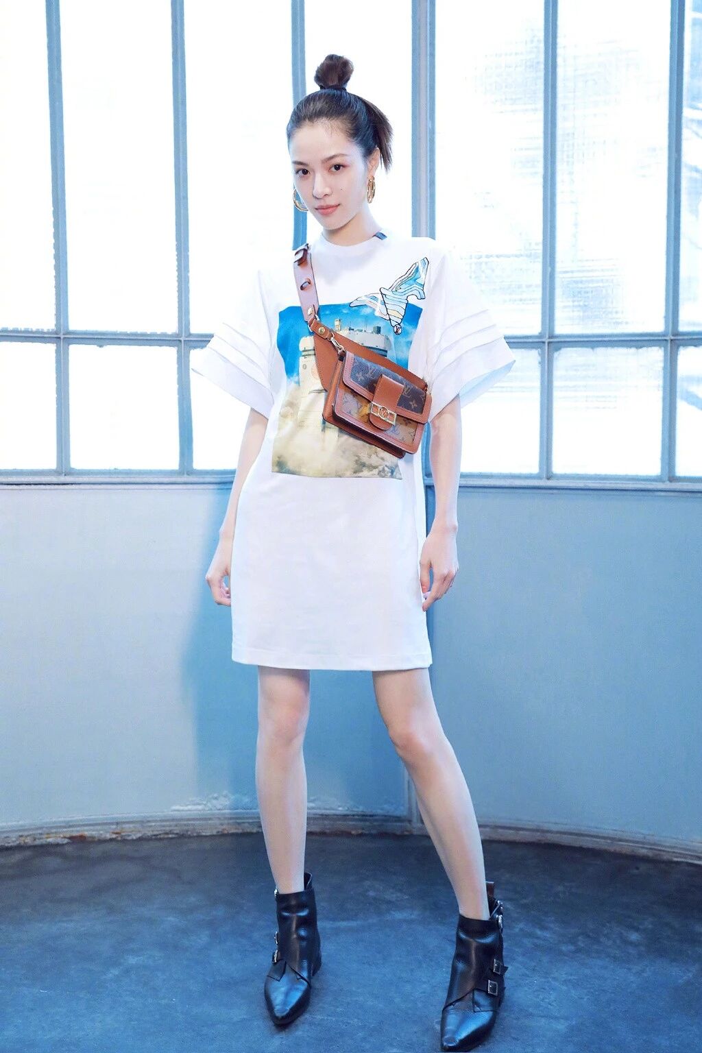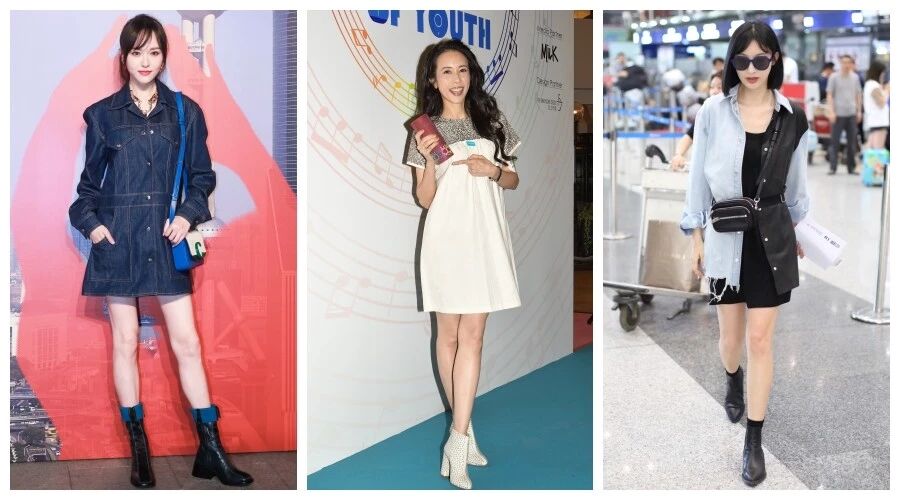 钟楚曦所穿的脚踝靴,让她原本随意普通的OversizeT恤裙都变得不一样了起来。
