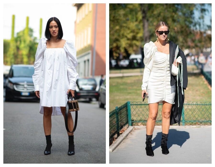 根本不用担心袜靴的褶皱,其实跟这种泡泡袖、娃娃裙的感觉也太搭了!一点也不用担心娃娃裙被说装嫩了,脚踝左右的袜靴带给你成熟感,你只是太会混搭了!