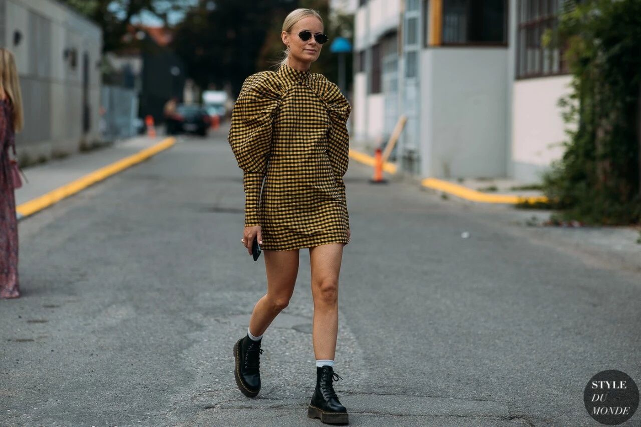 厚底让马丁靴更有一些朋克感,仿佛原宿街头上的身穿连衣裙的酷女孩。