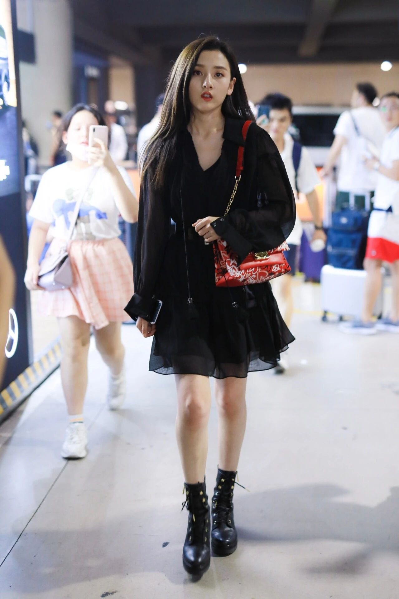 宋祖儿的甜美形象早已经深入我们的脑海,早已经不需要凉鞋等来增添可爱,相反马丁靴跟整体的黑色融为一体,相比往日更像个暗黑精灵~