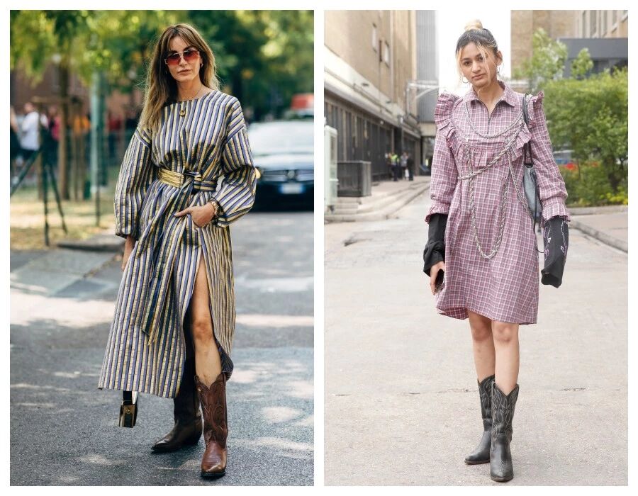 有纹理的靴子总是散发着异域风情,就像这两款靴子无论是棕色的牛仔风,还是灰色的别致,都将穿搭化身 浓浓的西部风情。