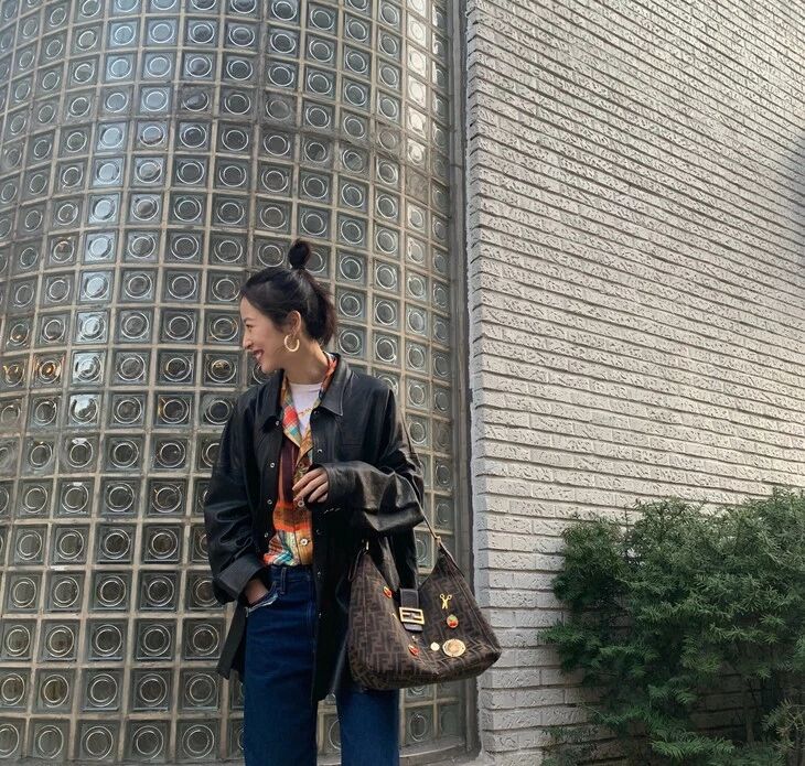 同班同学Lisa作为一名称职的CELINE好盆友,一只中古CELINE老花腋下包当然是她必不可少的装备,一下将这款年代久远的包款带火了不少。