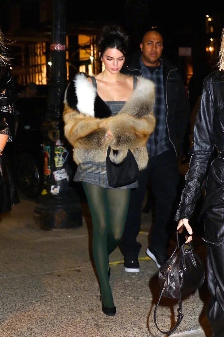 绿色涂鸦款配上冷色系穿搭,走路带风的肯豆女士又在持靓行凶了!