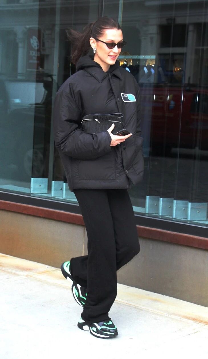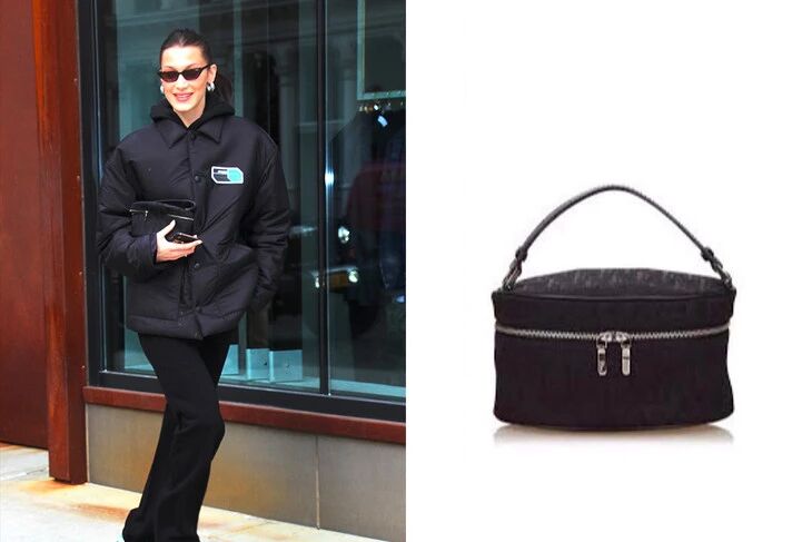Bella的街拍中还出现过一只造型硬挺的黑色手提包,与一身All Black装束搭配在一起酷劲十足。