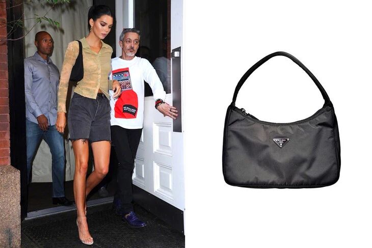 这只Prada Hobo是肯豆的最爱,特别的尼龙材质比起普通的皮质包包更具动感。无论走到哪Kendall都一定要带上它,超高的出镜率在Kendall的一众中古包里绝对风头无两。