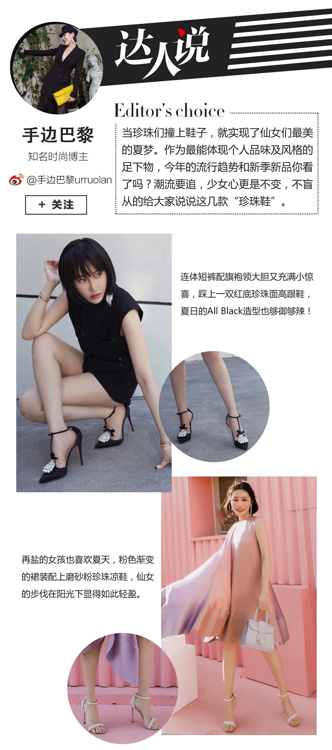当小巧圆润的珍珠遇上各式各样的鞋子,竟然碰撞出了华丽和时髦并存的气息,这用来搭配多彩的夏日是再好不过的选择了!