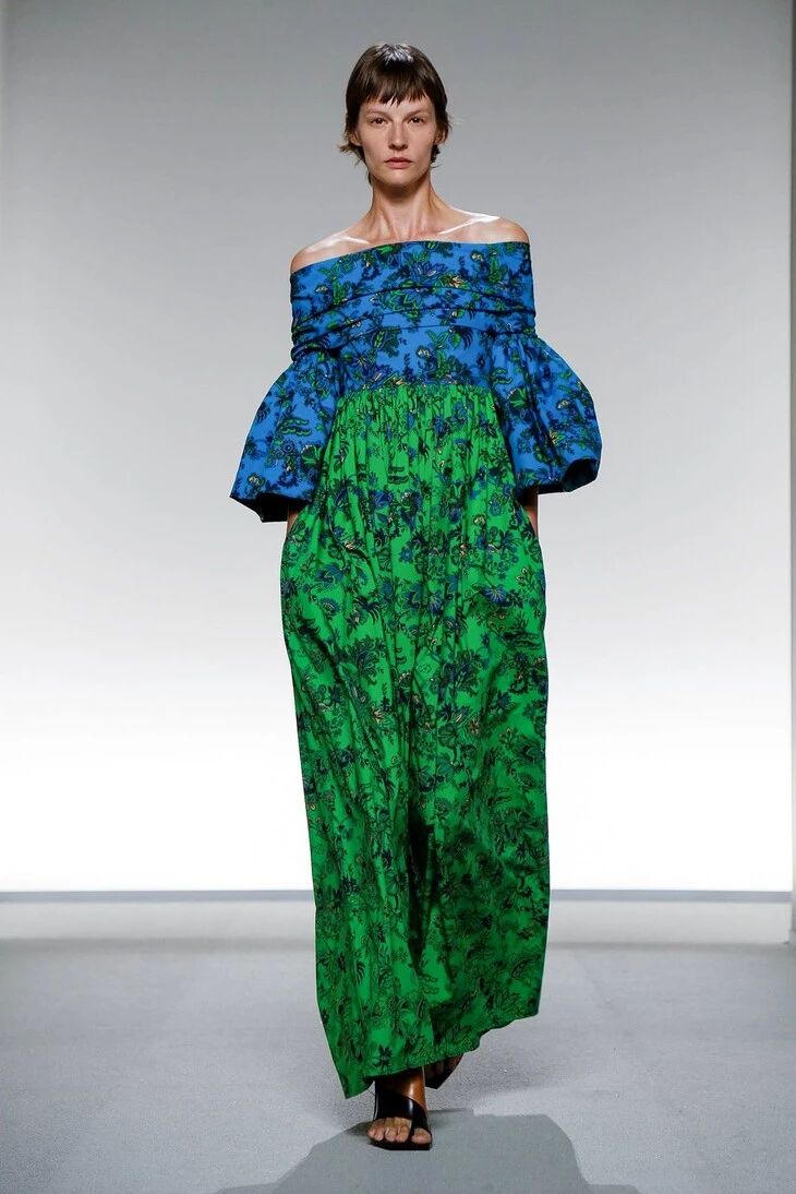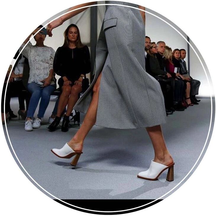 整个秀场上的鞋子的鞋跟也极具建筑设计感,仿佛凝聚着建筑或雕塑的灵魂,灵动的拼接款式搭配渐变色的鞋跟,恰如Clare将女性化的柔美与坚韧的女性力量巧妙地结合在了一起,十分潇洒时髦。
