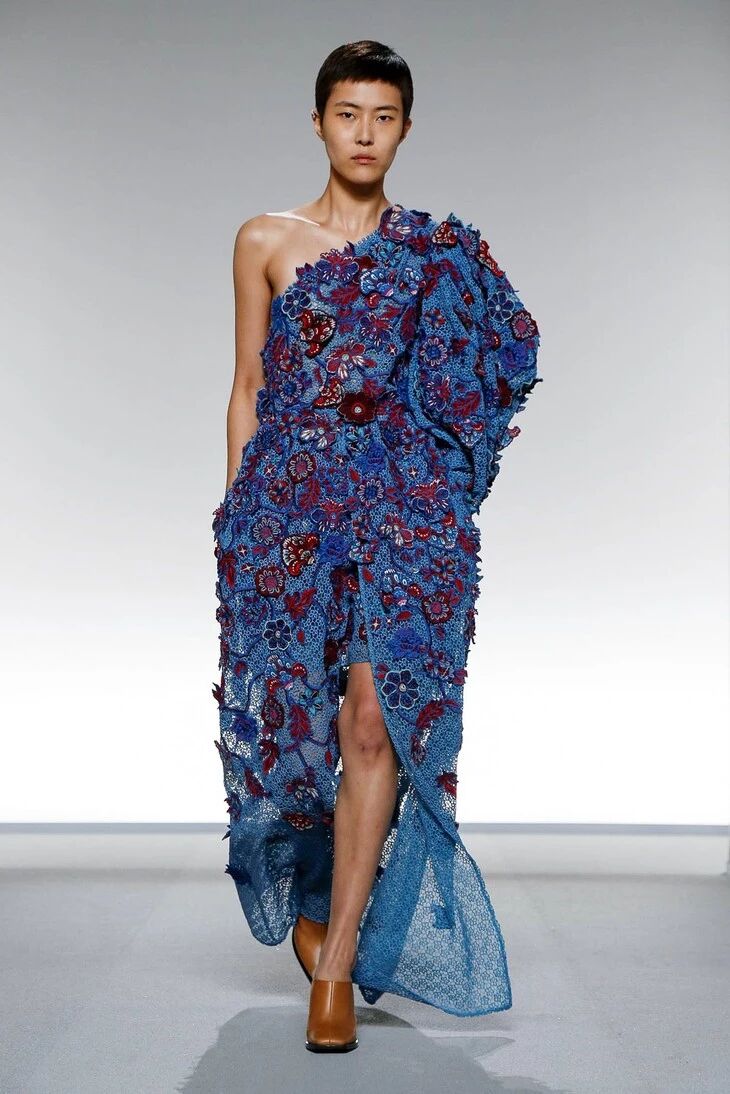 为了展现巴黎女人浪漫优雅的一面,本季的Givenchy运用到了大量蕾丝花朵的元素,飘逸的裙装在不同的材质、色彩和剪裁的变化下散发着同样的浪漫魅力。连衣裙袖口处的波纹处理如同盛开的花朵,领口处蜿蜒至脸庞的线条更显得十分柔美。