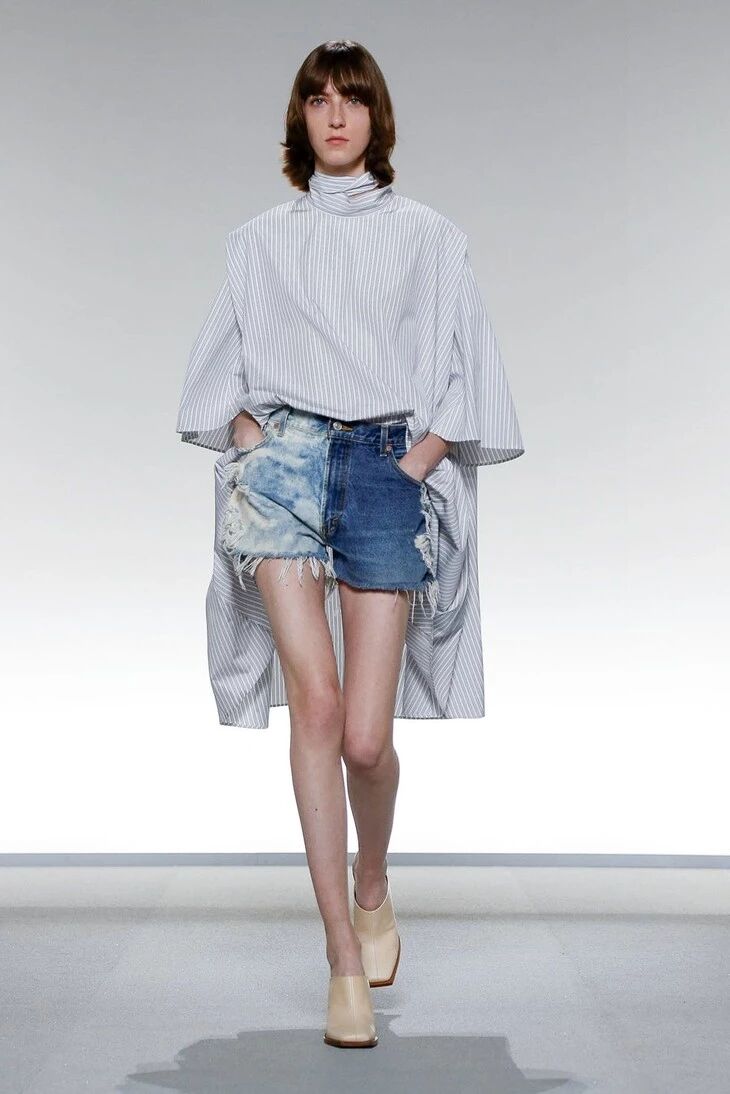牛仔跟Givenchy好像很难联系。但这一季里,破洞牛仔裤,磨边热裤搭配着西装外套或宽大飘逸的罩衫;开衩丹宁半裙配上了毛边跟拼色丹宁连身裙前后出现。一个颇具美国西部色彩的元素,成为了法式优雅代表T台上的主角......