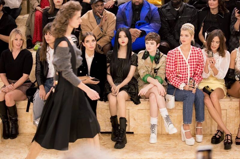 百变的Rita Ora也再次出现在了Miu Miu秀场,深V的连衣裙将性感若隐若现,搭配复古墨镜摩登又一点小古怪,Rita Ora这张脸简直太精致了。