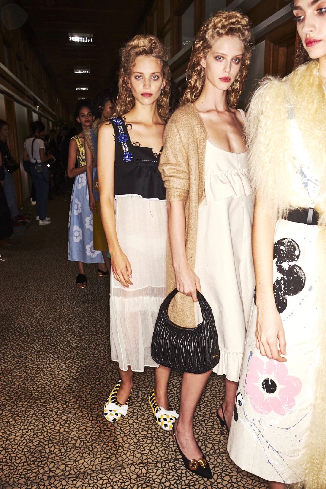 T台上飒气凌凌的超模们在台下也都露出了自己更加可爱的一面,也应对了Miu MIu女孩的多面性,少女的心事你别猜!