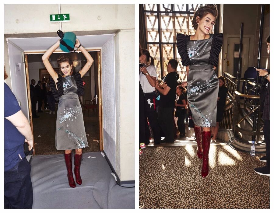 Kiersey Clemons作为嘉宾在大秀开始前,为大家进行全方位的探索Miu Miu 2020春夏系列时装秀的秀场的奥秘。