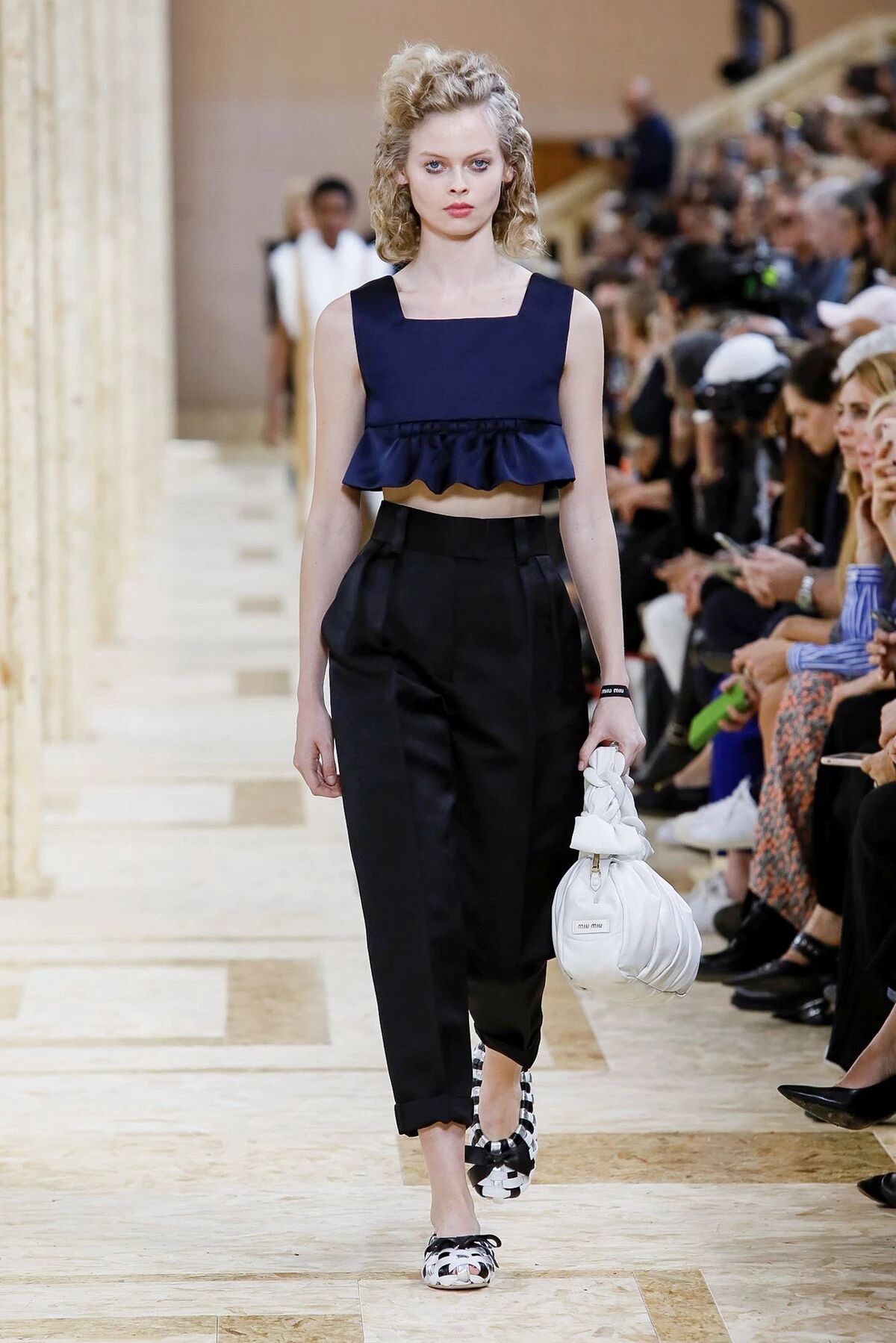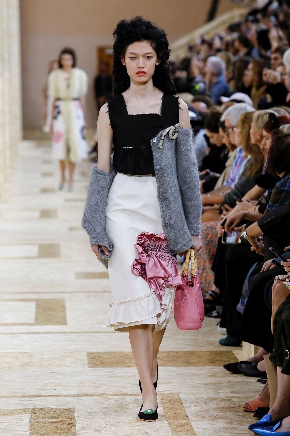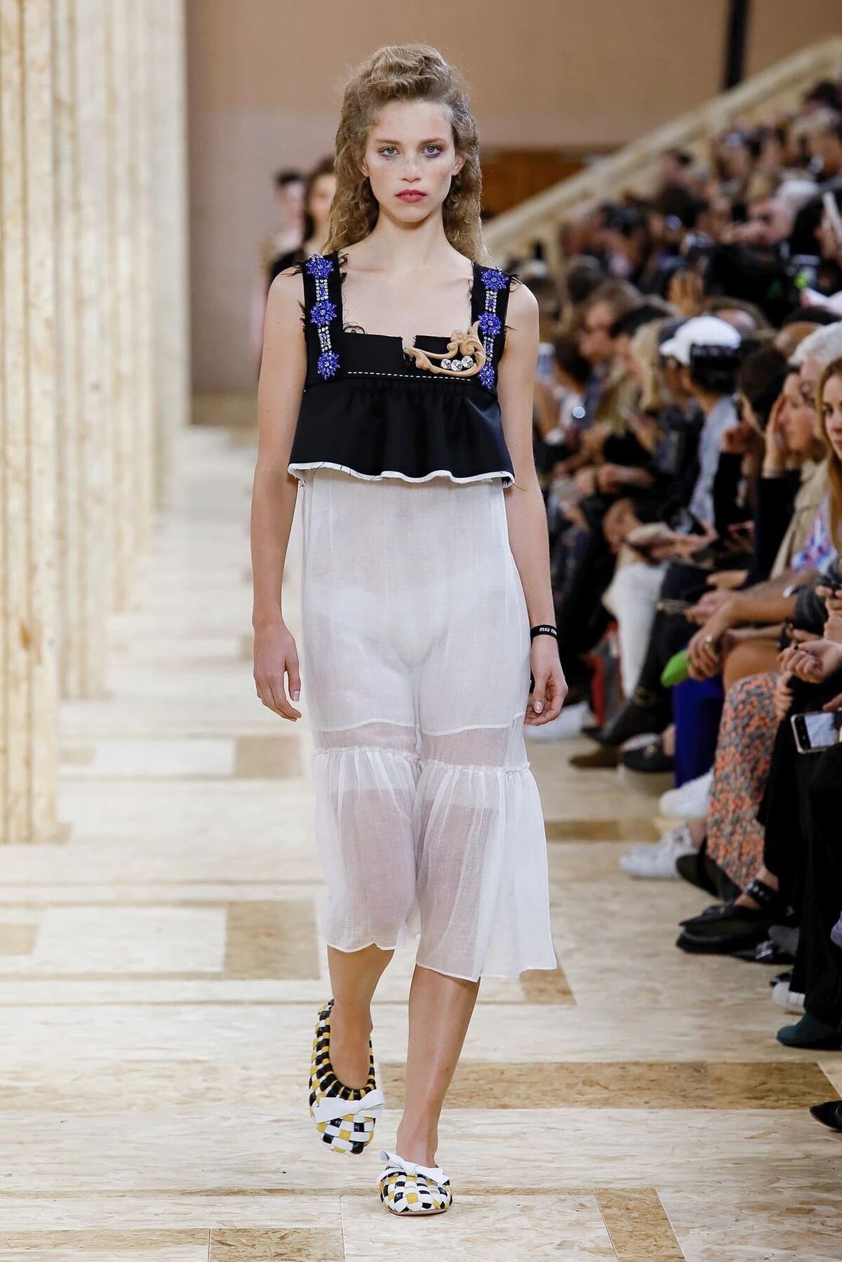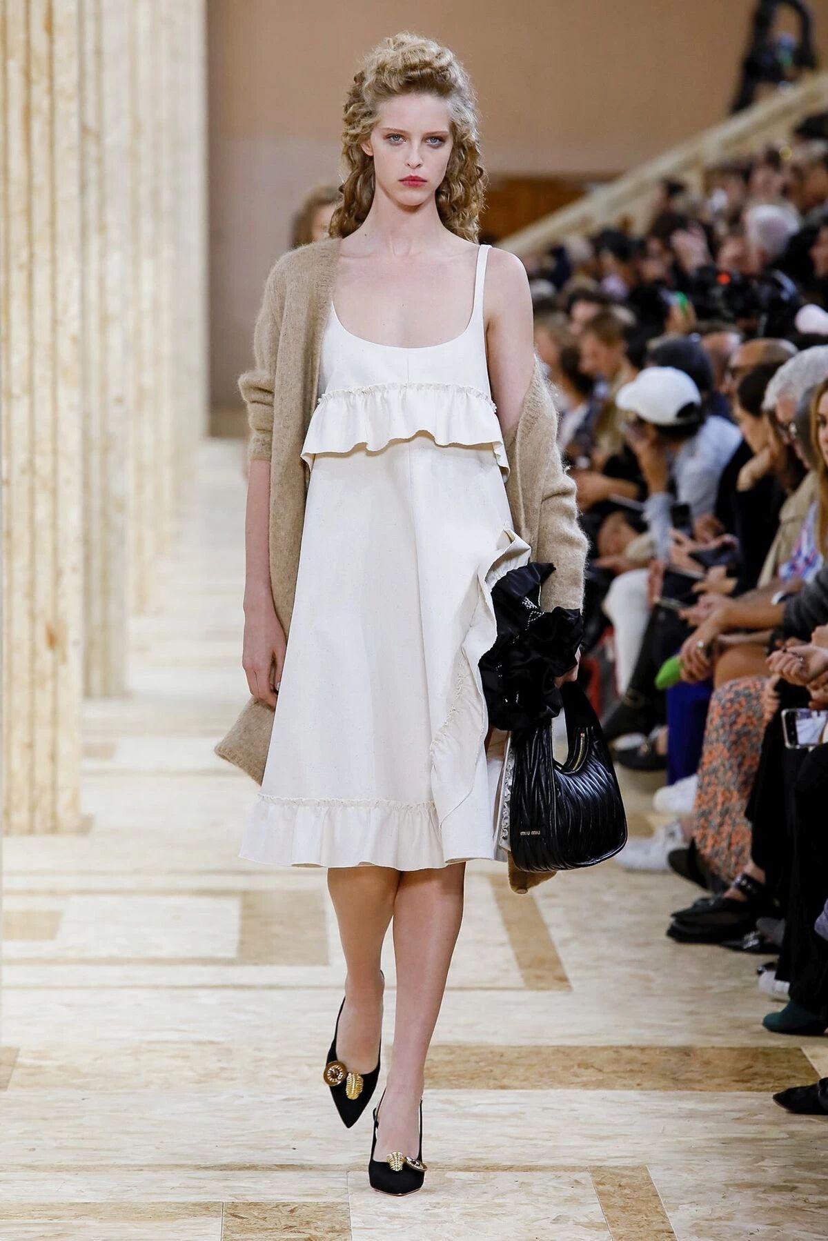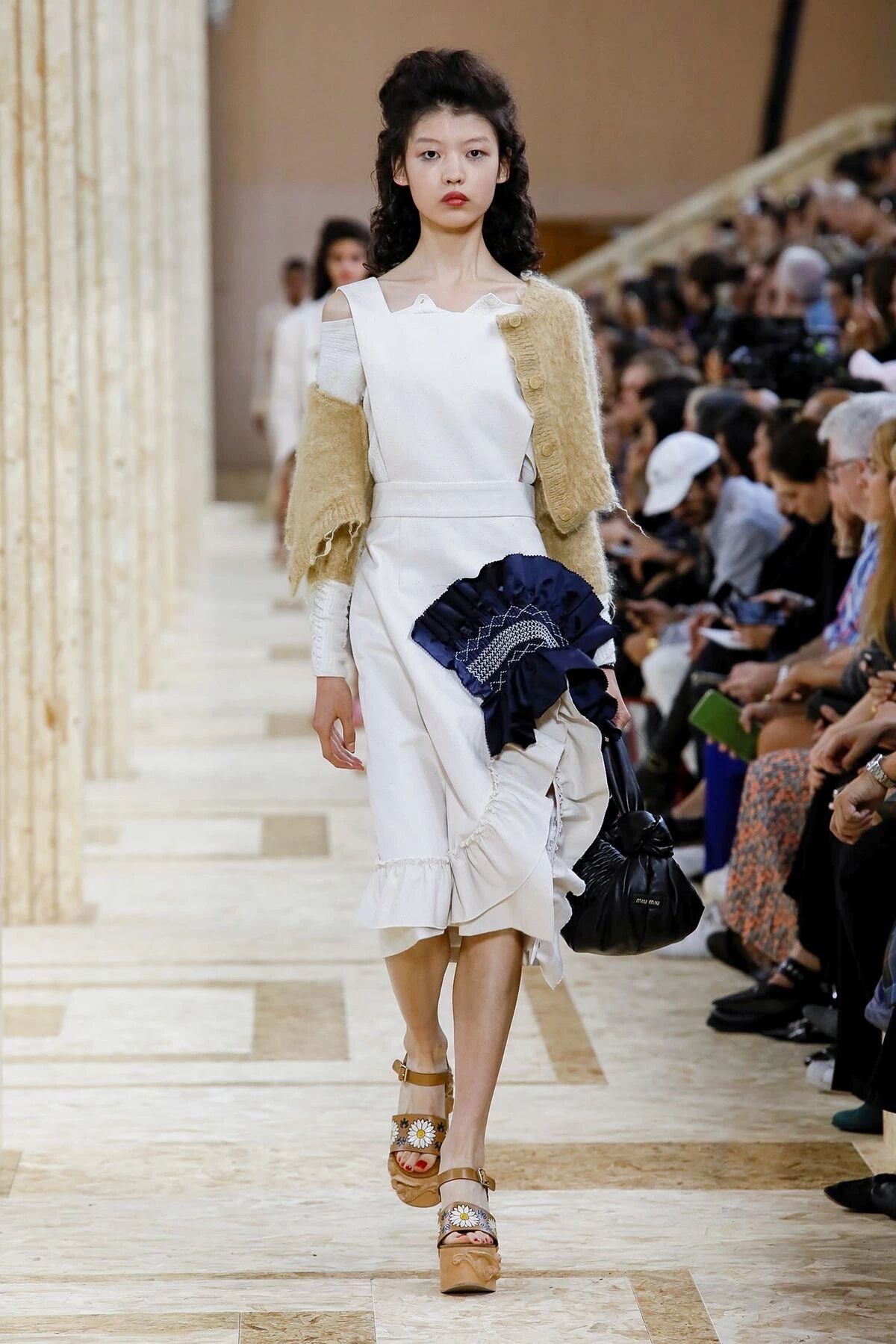 呈现了很多直白的部分,Miu Miu也不忘了属于女孩隐喻的那一份设计,简单的长裙搭配局部褶皱等手法,最纯粹简单的就将女孩的美丽体现的淋漓尽致。