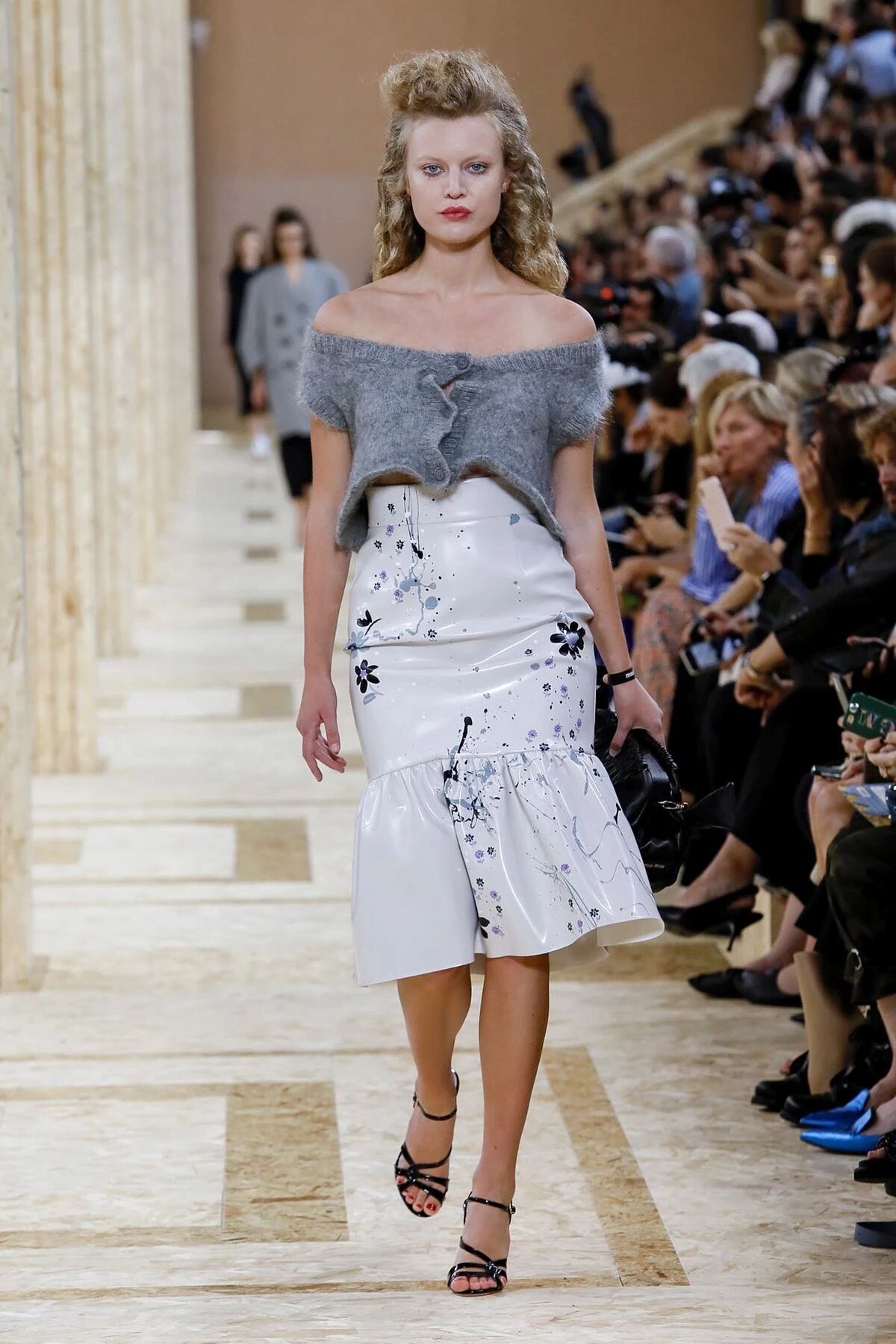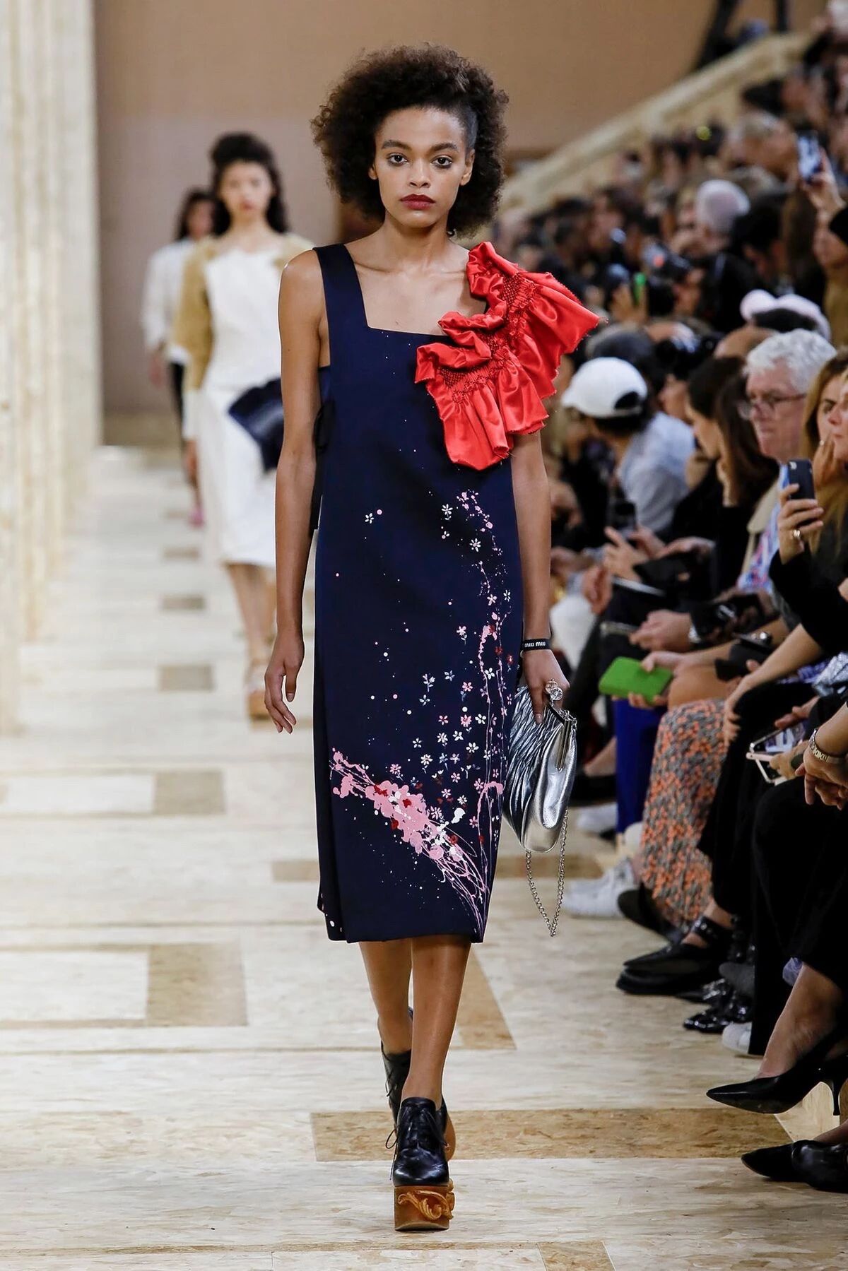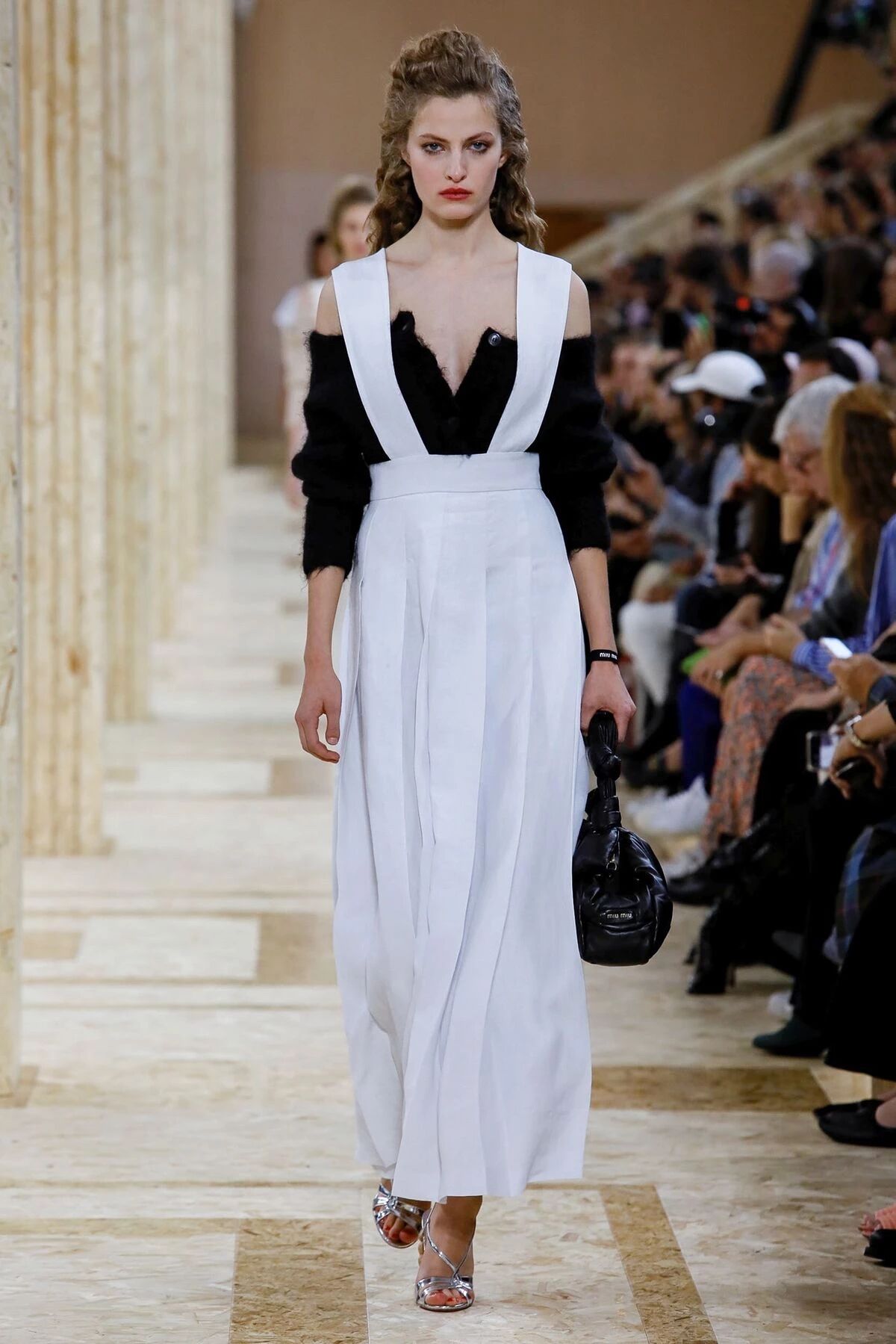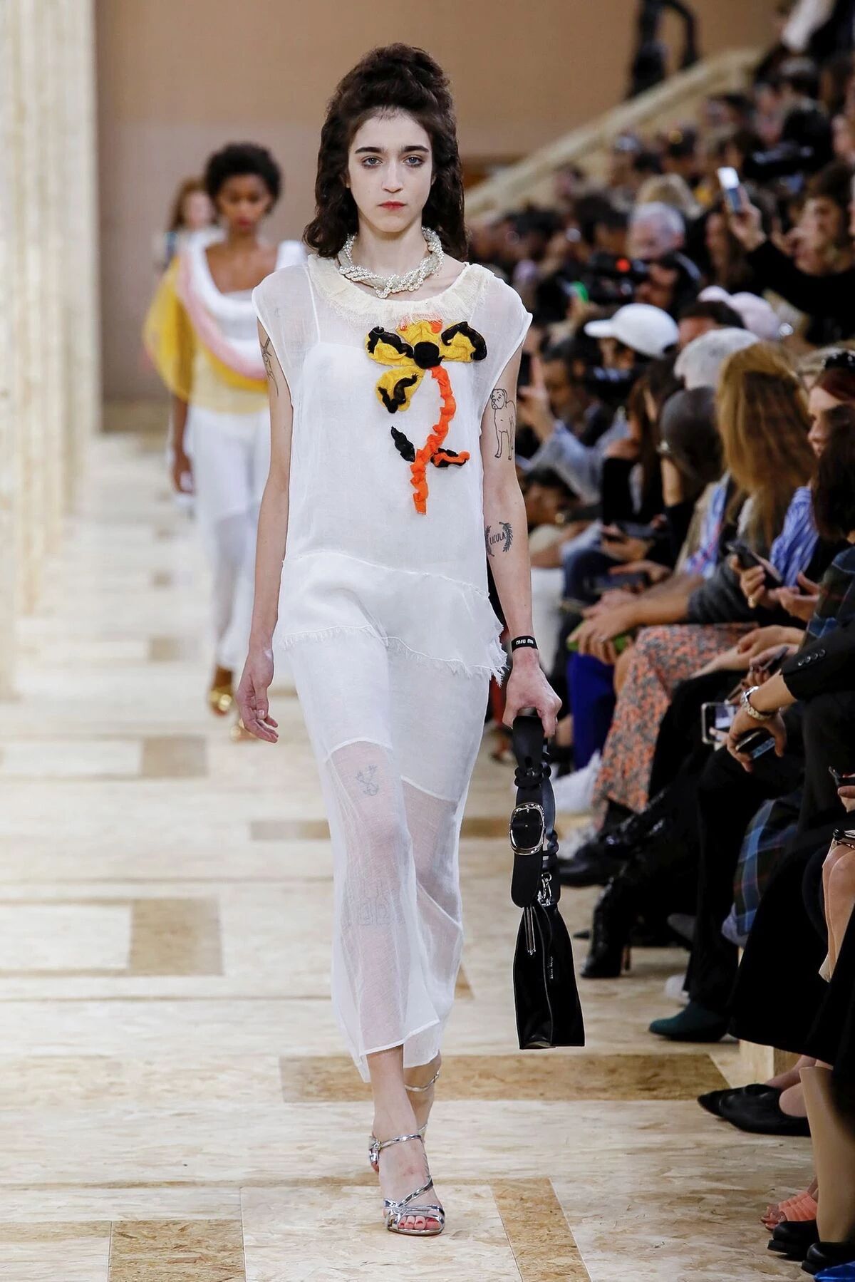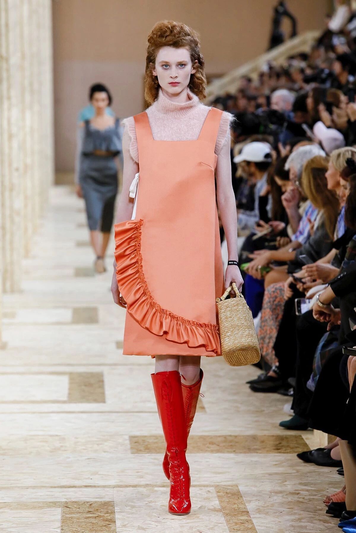 呈现了很多直白的部分,Miu Miu也不忘了属于女孩隐喻的那一份设计,简单的长裙搭配局部褶皱等手法,最纯粹简单的就将女孩的美丽体现的淋漓尽致。