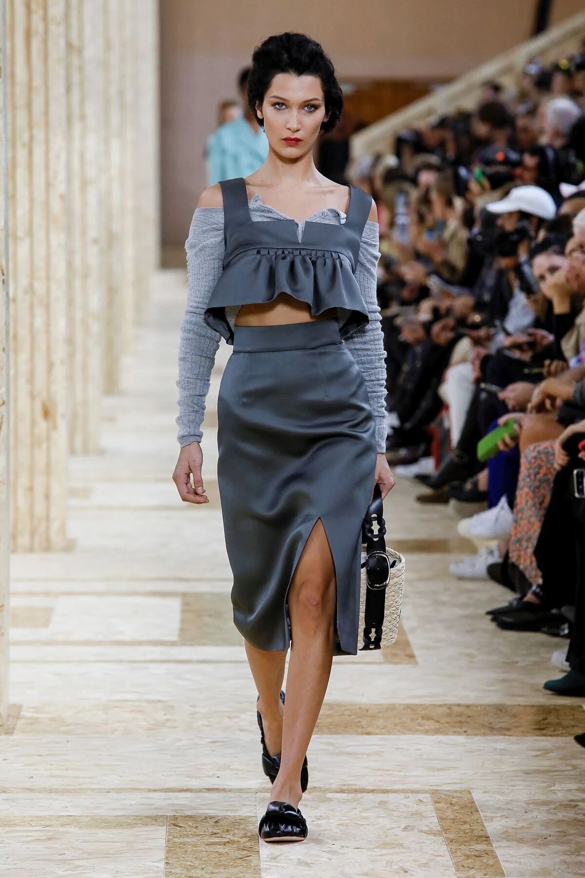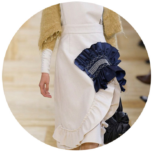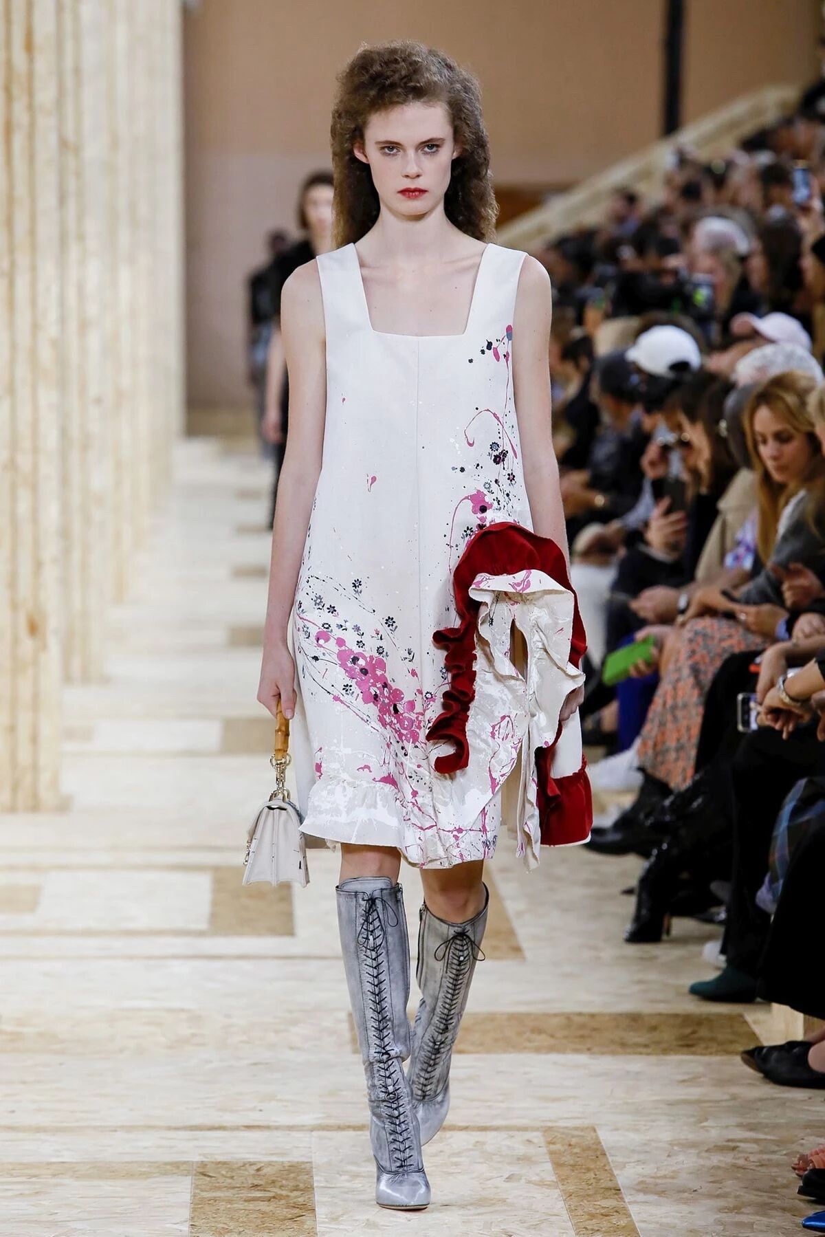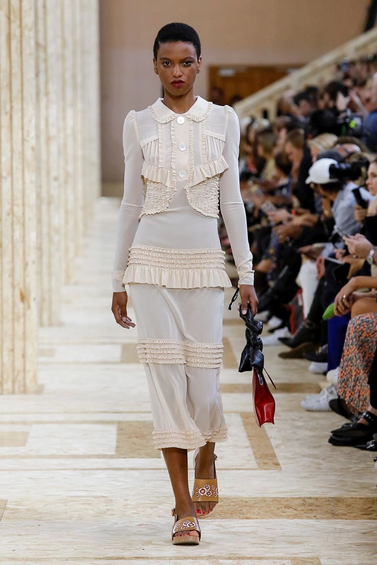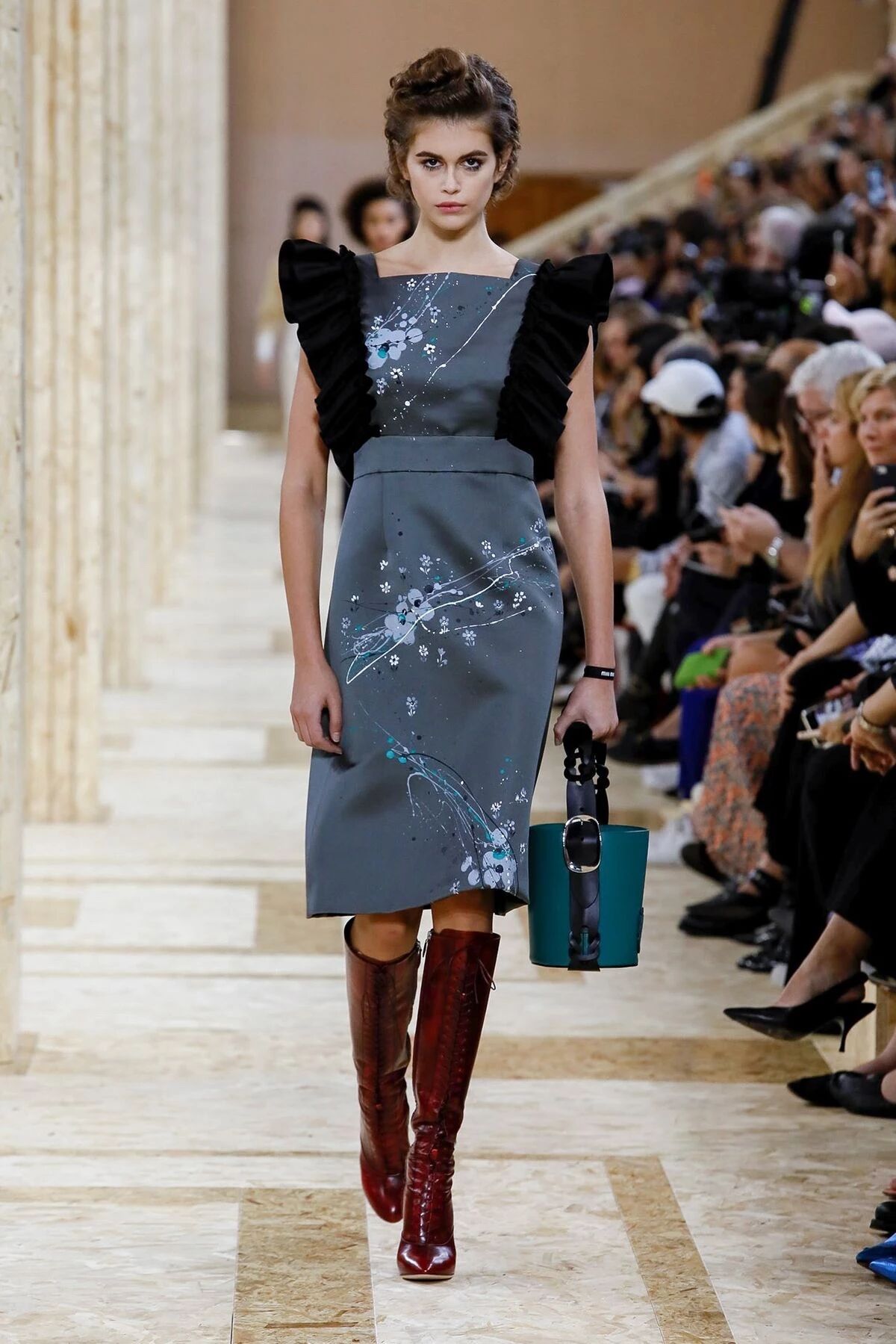 呈现了很多直白的部分,Miu Miu也不忘了属于女孩隐喻的那一份设计,简单的长裙搭配局部褶皱等手法,最纯粹简单的就将女孩的美丽体现的淋漓尽致。