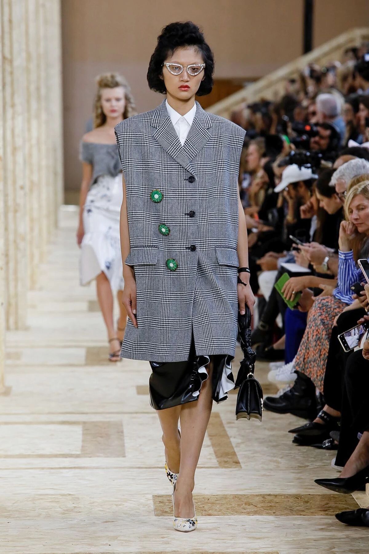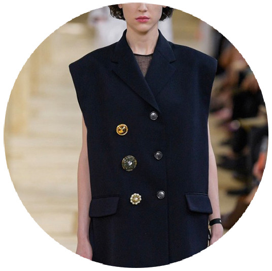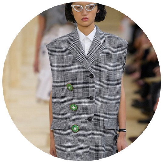 除了让人印象深刻的围裙装,借鉴了制服和工装元素的廓形打造出了——无袖茧形外套,也是本季绝美单品之一。无袖让穿搭变得会呼吸一般,犹如茧形的外套孕育出十分独特的美丽。