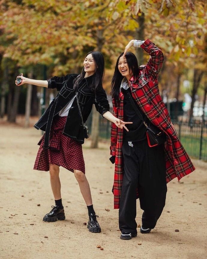 作为新生代生力军的赵佳丽和李舒萍两位小仙女,在纽约时装周秀场外的街拍则是甜酷相随,红与黑的对比穿搭洋溢着青春无敌的气息。