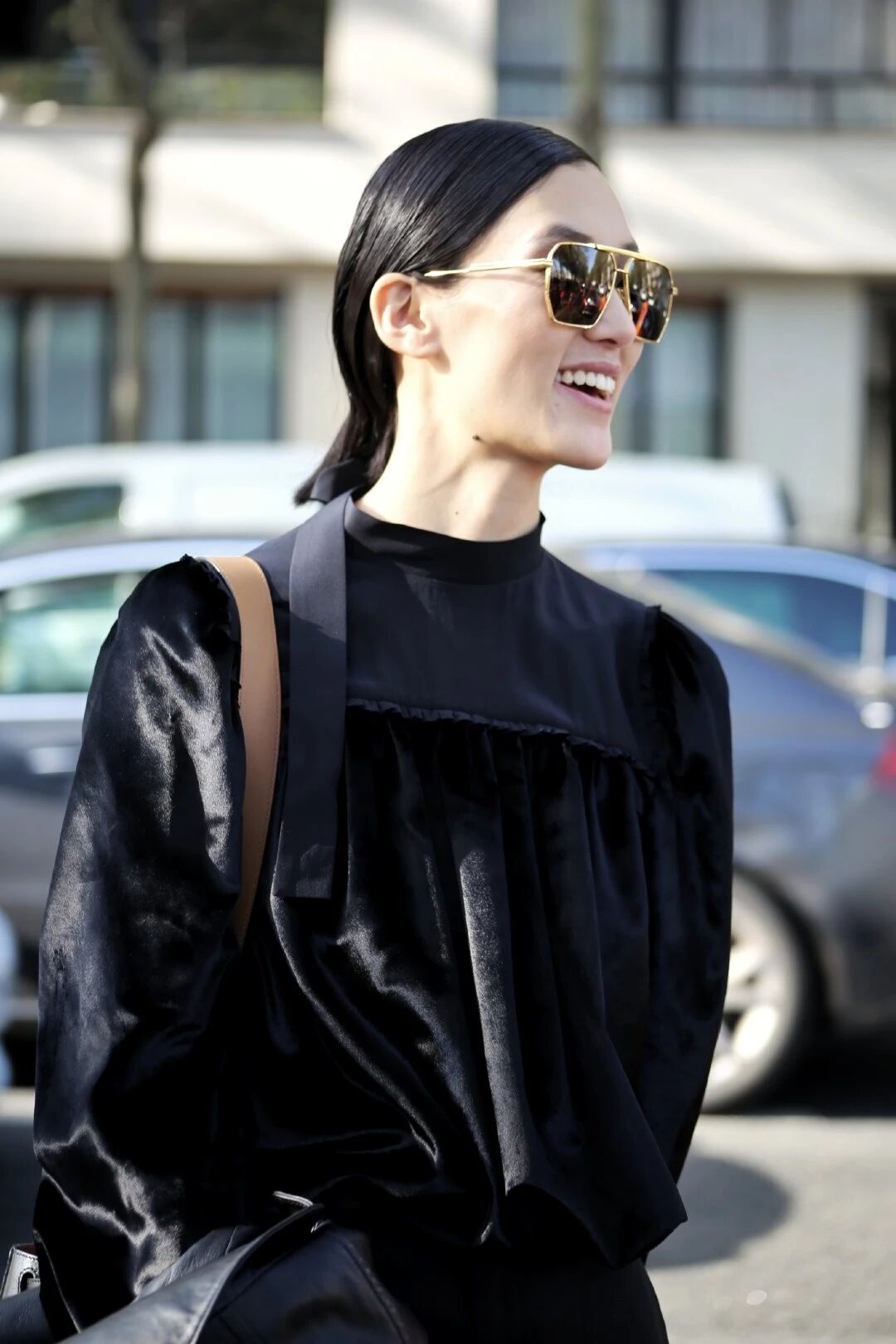一身黑的慵懒造型不仅帅气度满分,也勾勒出优秀的身型。如果担心全身黑色过于沉闷,不妨像张丽娜一样通过荧光绿色的云朵包来点亮整体造型。墨绿色的CELINE袜靴更是丰富了层次感。