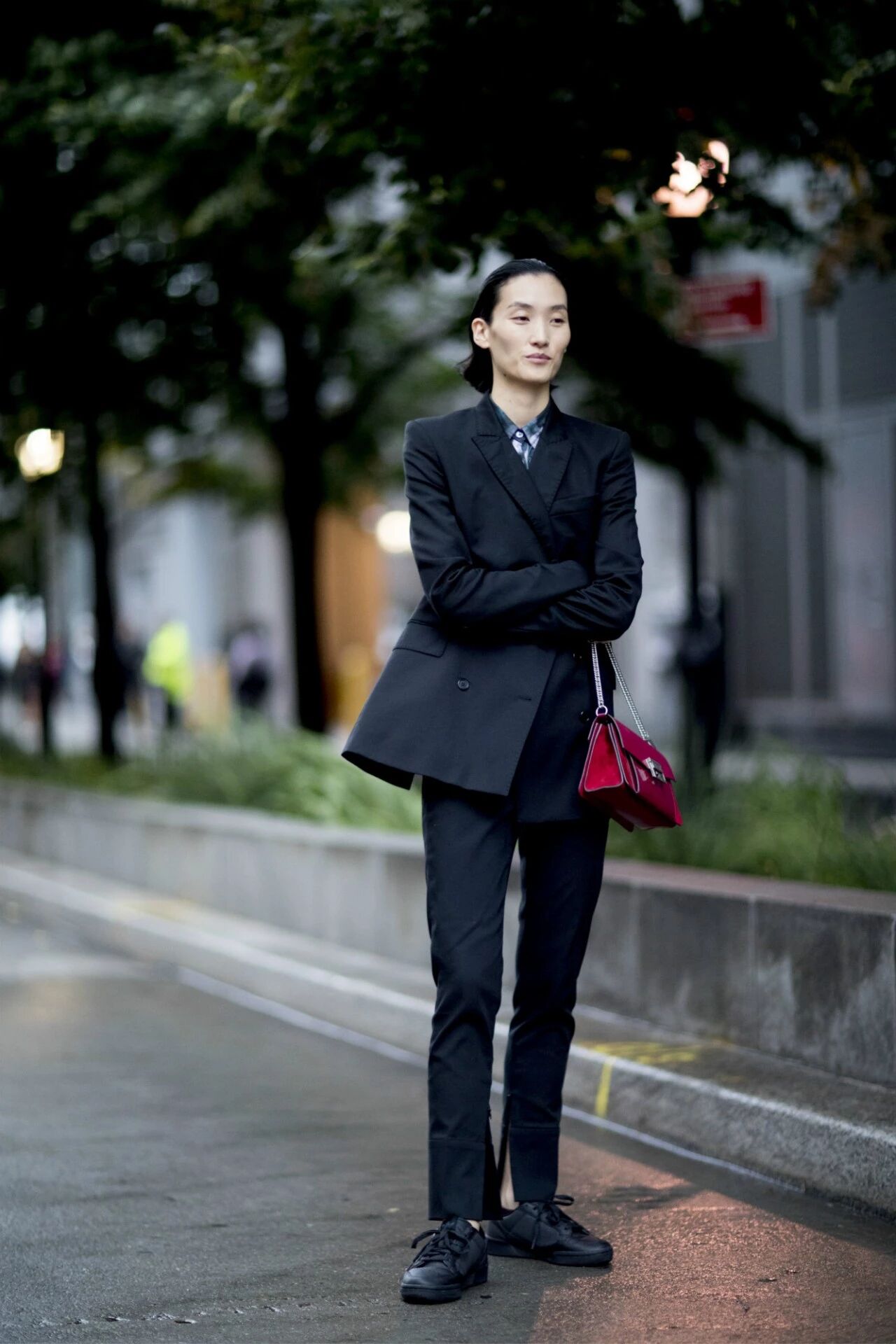 张丽娜可以说是很容易打造出一包多套穿搭的高手了,西装作为她较为钟爱的一款单品出镜率也是颇高的,搭配白T和运动鞋,高级感不减,气场强大到让人挪不开眼!