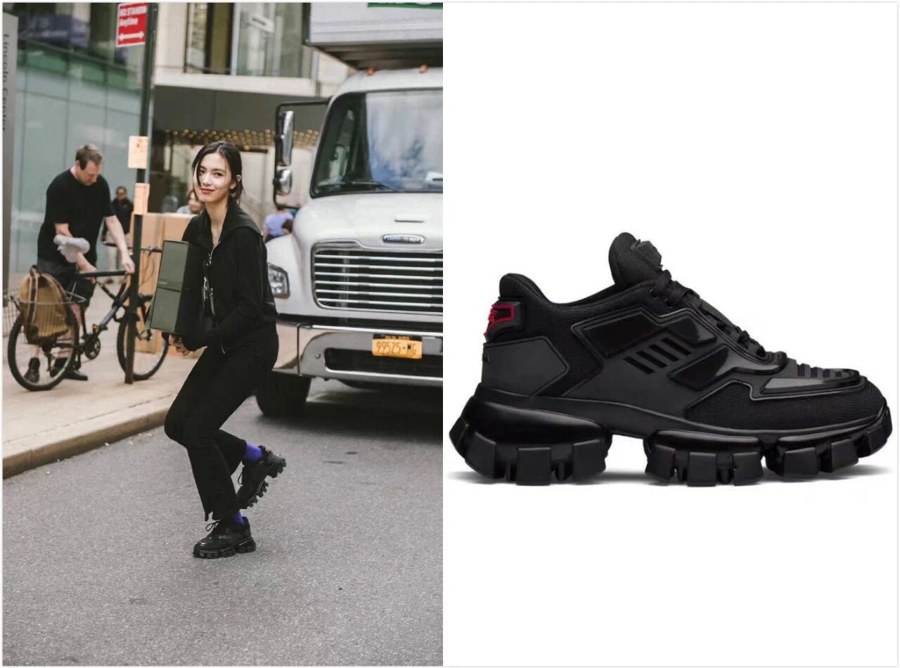 也许越年轻的女孩越热爱黑色,赵佳丽的私服里也有大量黑色单品,这双Prada运动鞋更是出镜率超高,可以说是少女的心头好了。