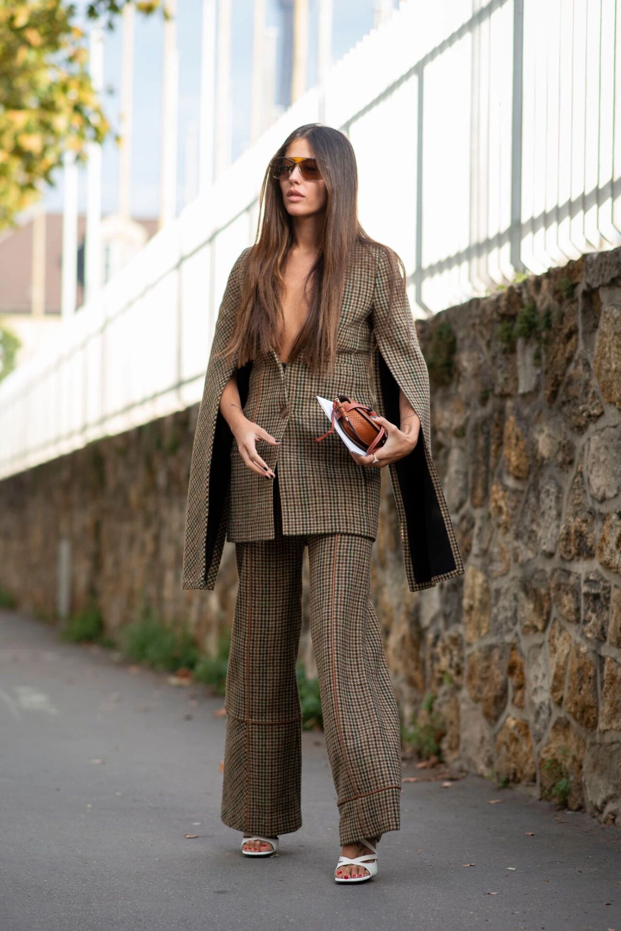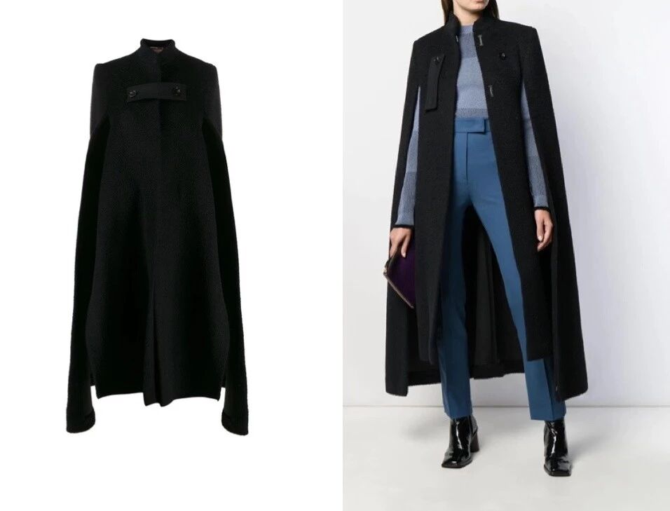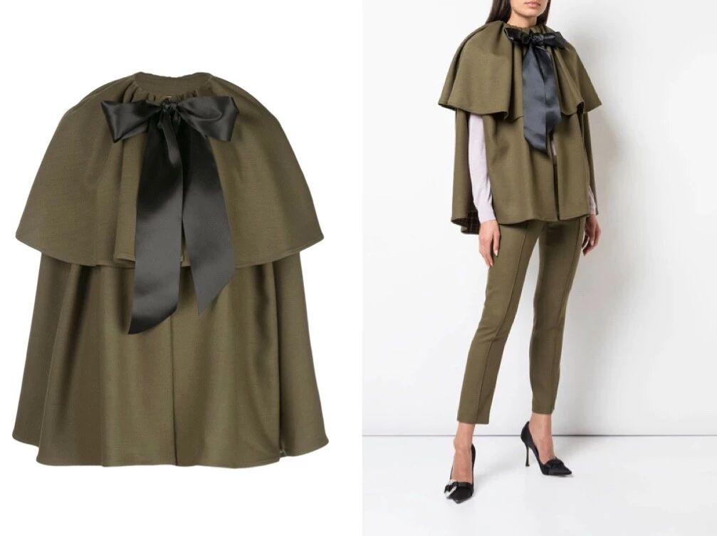 说道斗篷怎么能不想到斗篷套装呢,不管是裤装还是裙装款加入了斗篷都能让设计的死板统统不见。